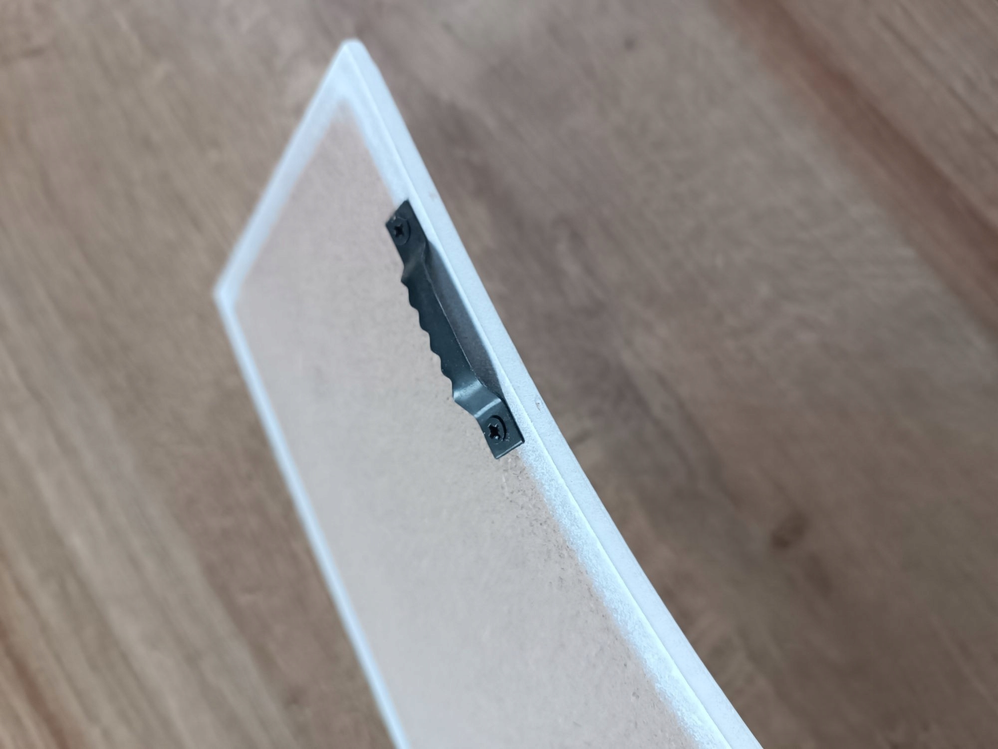 Сзади есть вешалки, чтобы повесить ее на стену.