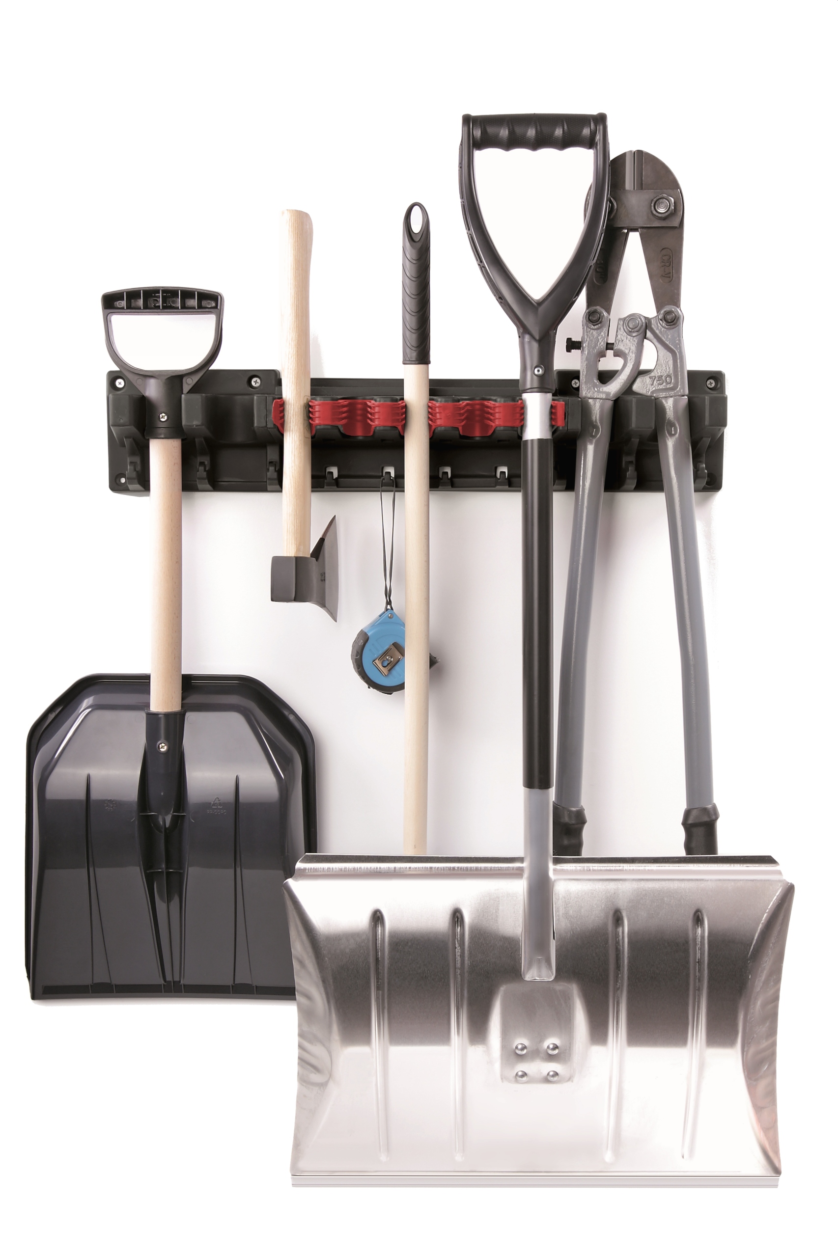 - 5 зажимных углублений с резиновой вставкой для губ для подвешивания инструментов с ручками, таких как: лопаты, грабли,