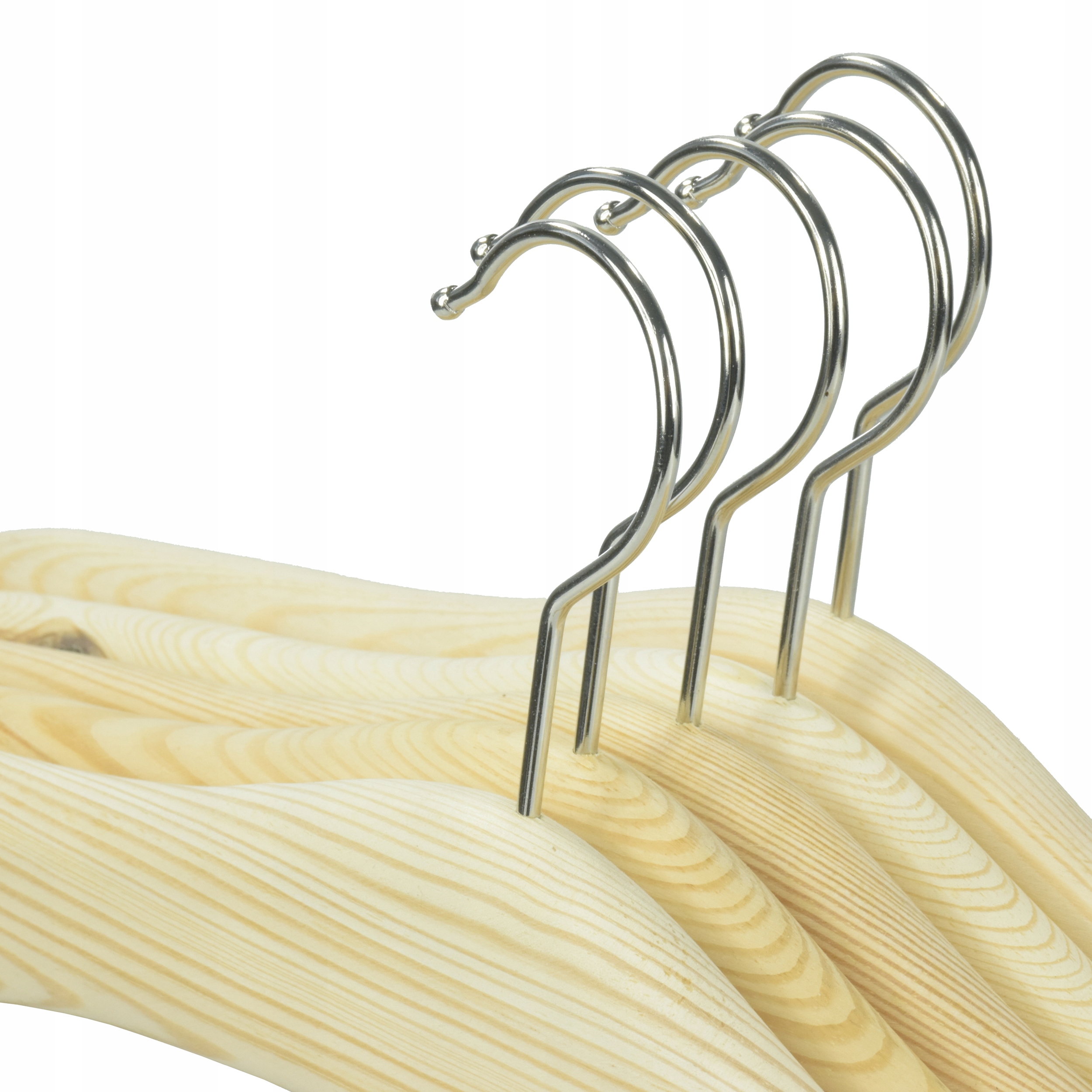 Наши вешалки изготовлены из чрезвычайно прочной, натуральной древесины сосны, устойчивой к случайным повреждениям, благодаря тому, что они без проблем справляются даже с тяжелыми предметами одежды, всегда обеспечивая надежный захват. Кроме того, их поверхность покрыта бесцветным лаком
