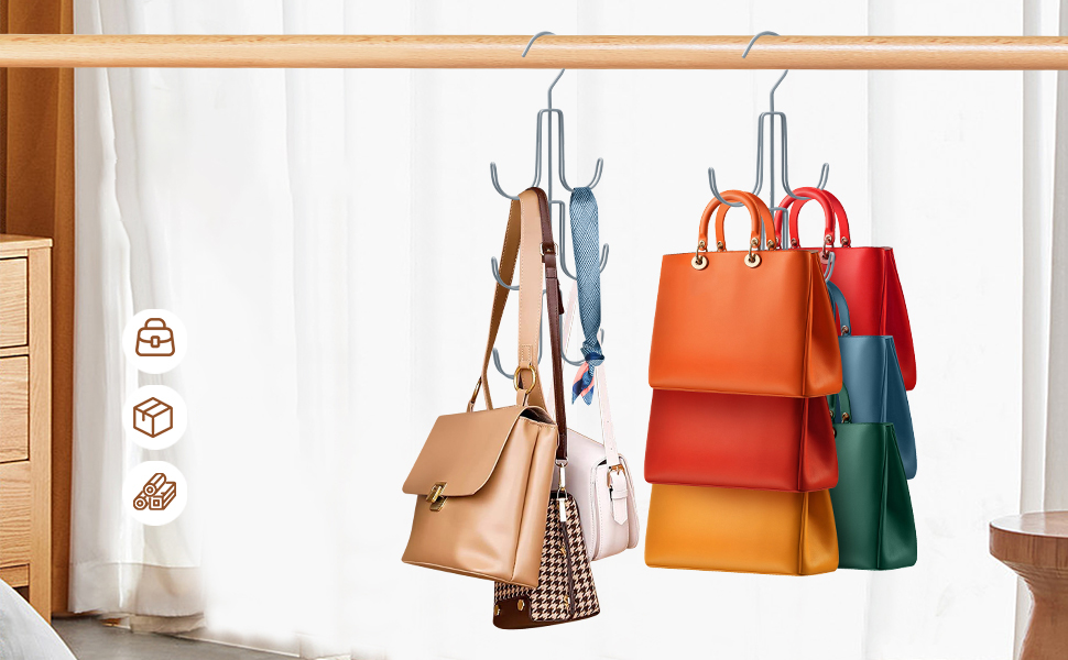 - Вешалка для сумок в гардероб вмещает 6 различных типов сумок:на длинных или коротких, широких или узких лямках.