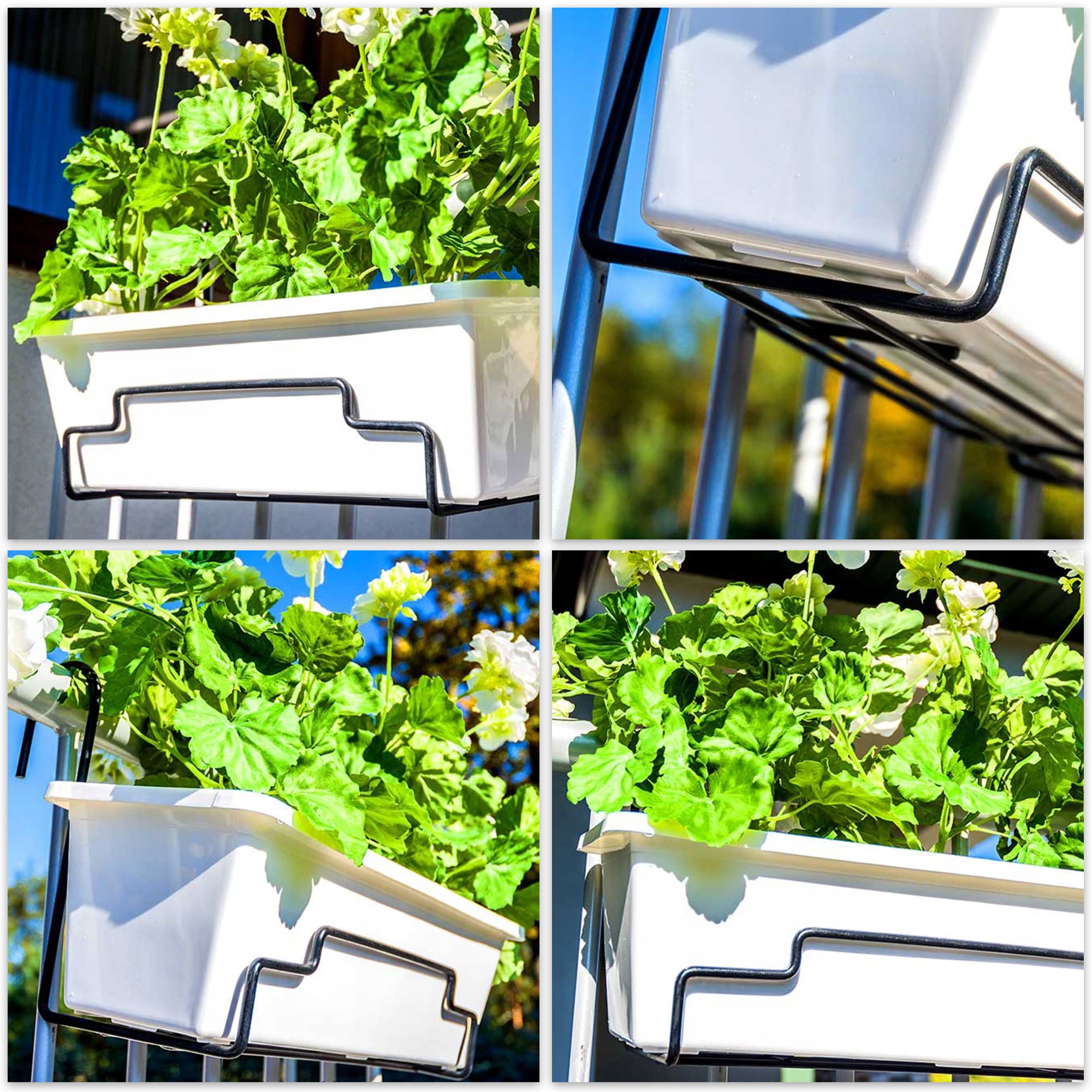 Подвески для балконных ящиков обеспечат устойчивое крепление цветочных горшков и соответствующее экспонирование. Они позволят безопасно выставить ваши любимые цветущие виды: герани, сурфии, фуксии и многие другие.