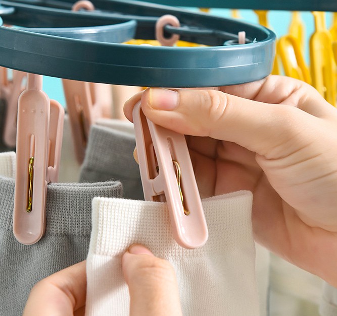Развешивание белья станет быстрым и беспроблемным! Вешалка легкая и прочная. У него 12 зажимов и крючок, поэтому его можно повесить где угодно.