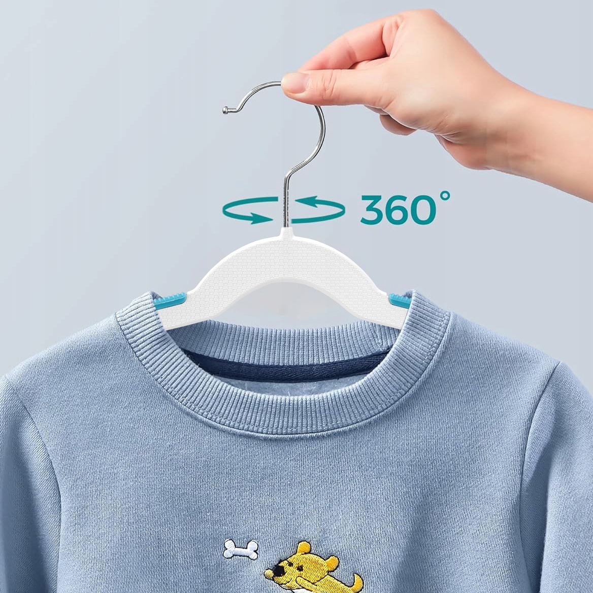 Надежный блестящий крючок с возможностью полного вращения позволяет легко повесить одежду в любом направлении. Благодаря этому вешалки можно удобно подогнать под любое пространство.