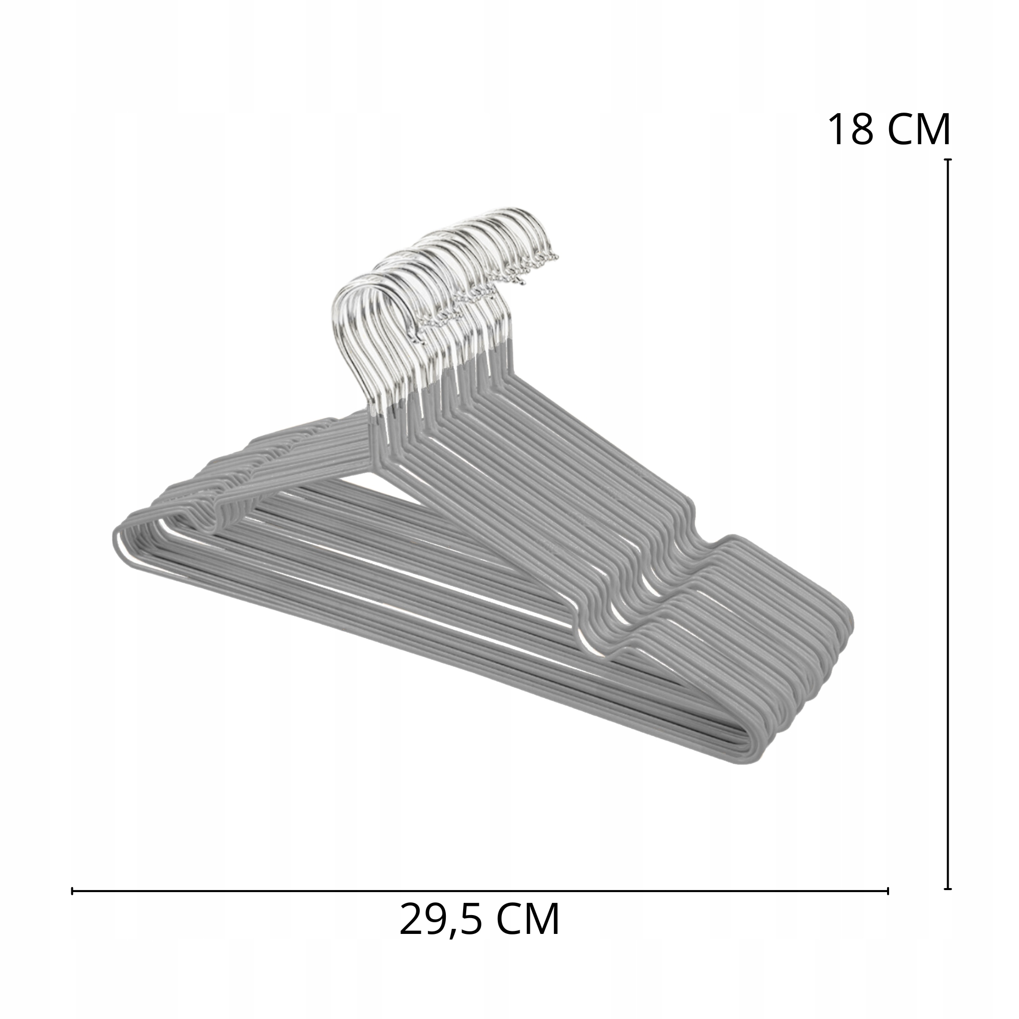 Набор из 20 шт. серых вешалок, станет прекрасным цветовым дополнением гардероба вашего ребенка! Покрытые ПВХ, они защитят одежду от соскальзывания, а закругленные дужки не дадут ей деформироваться. Изготовлен из прочного и тонкого материала, который сэкономит место в вашем гардеробе! Благодаря специальным вырезам можно легко повесить майки и платья.