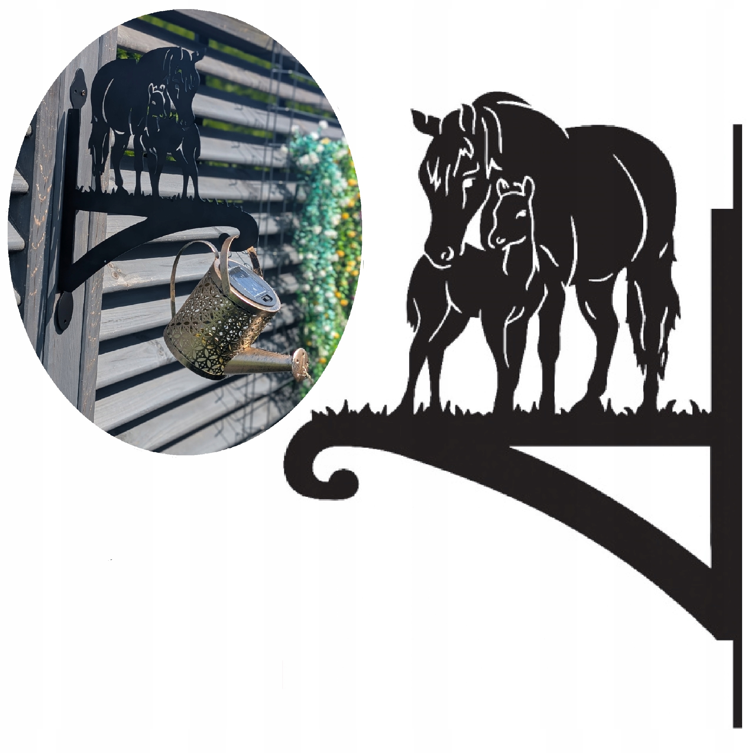 Вешалка для вешалки для горшки стены кровати цветочная кровать Черная декоративная лошадь Джербак