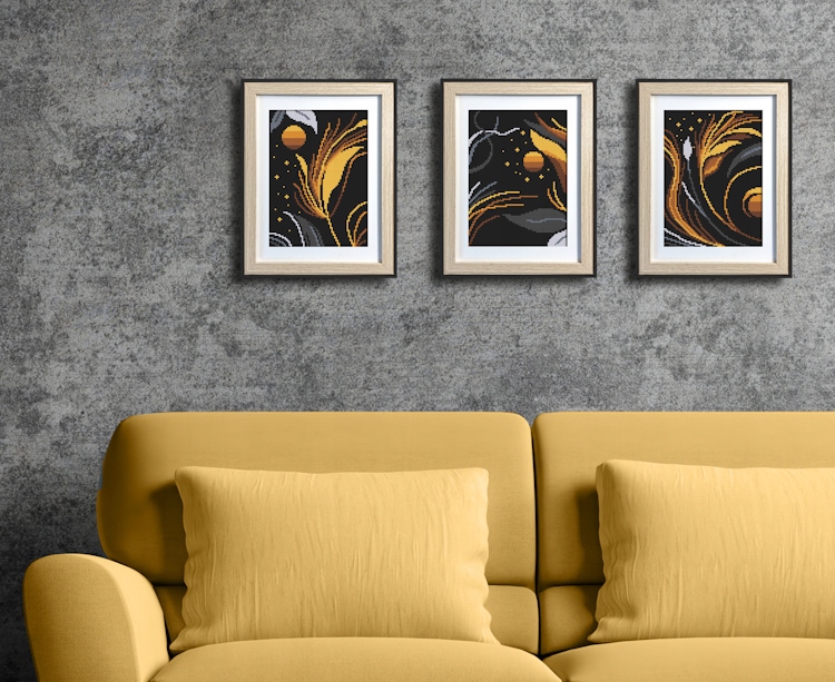 Вишивка хрестом - Схема вишивки на папері - Золоті трави - триптих