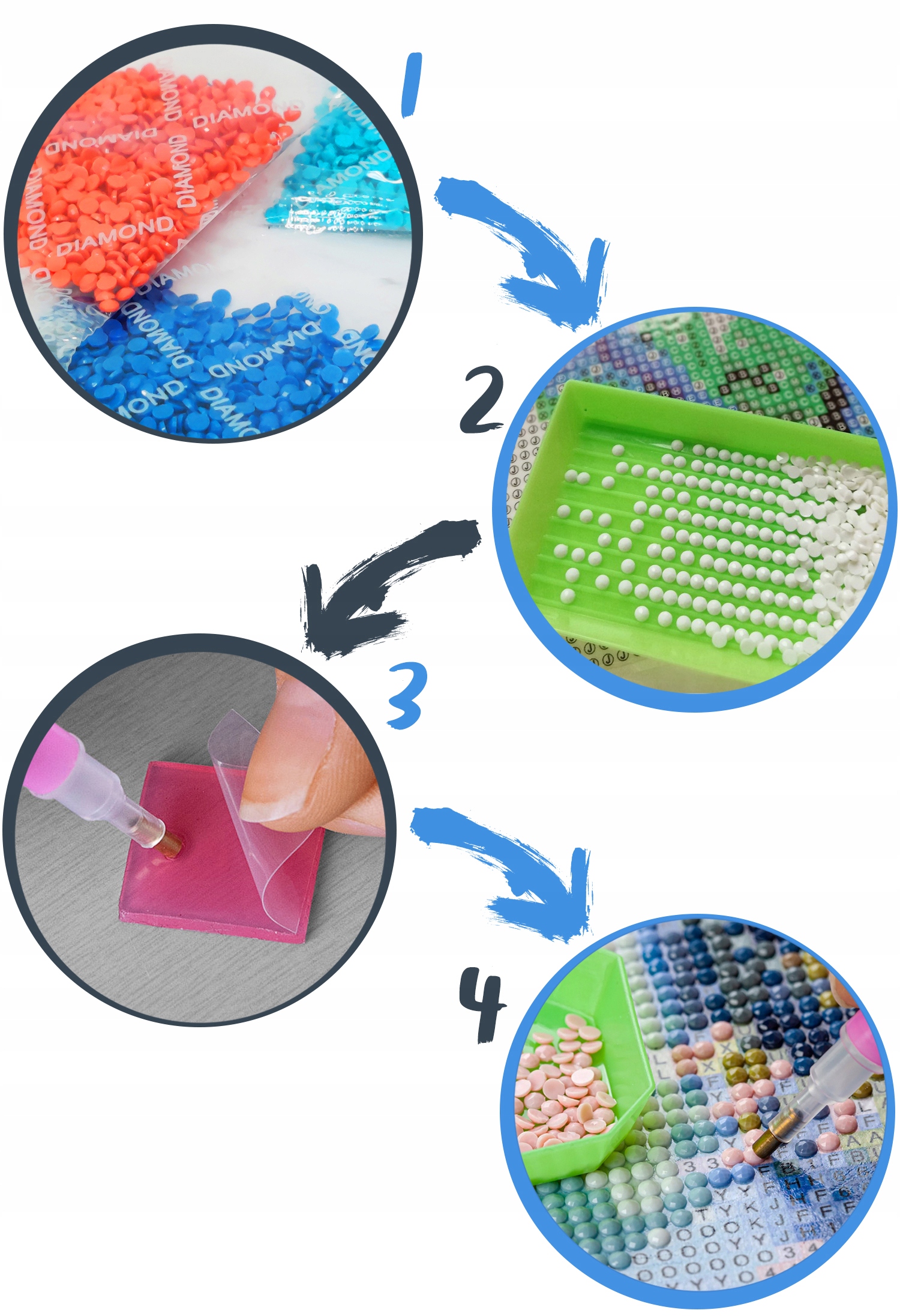 <р>1. Подготовьте свое рабочее место и распакуйте набор для рисования алмазами. Перед использованием холст следует расправить с помощью книги или другого тяжелого предмета <р>2. Весь холст покрыт слоем клея, который позволит приклеить ромбы. Снимите защитную фольгу только с той части холста, которую вы будете заполнять ромбиками. Постепенно снимите защитную фольгу с последующих фрагментов. Это предотвратит высыхание остального клеевого слоя. <р>3. Выберите ромбы, которые вы будете наклеивать. Найдите соответствующие символы и цифры на открытой части полотна. Насыпьте порцию кристаллов выбранного цвета в пластиковый контейнер. <р>4. Теперь возьмите аппликатор и окуните его в специальную подушечку с сухим клеем. Беремся за каждые несколько алмазов, не делаем это с каждым бриллиантом (желательно, когда кристаллы потеряют сцепление с аппликатором) <р>5. Приклейте кристалл к покрытому клеем кончику аппликатора и переместите его в подходящее место на холсте. <р>6. Если вы случайно застряли бриллиант не в том месте, удалите его пинцетом (не входит в комплект).ВНИМАНИЕ! Если ромбовидную мозаику предстоит собрать в присутствии ребенка, необходим постоянный контроль со стороны взрослого. Наличие мелких деталей может создать риск проглатывания или удушья. Позаботьтесь о своей безопасности во время работы!