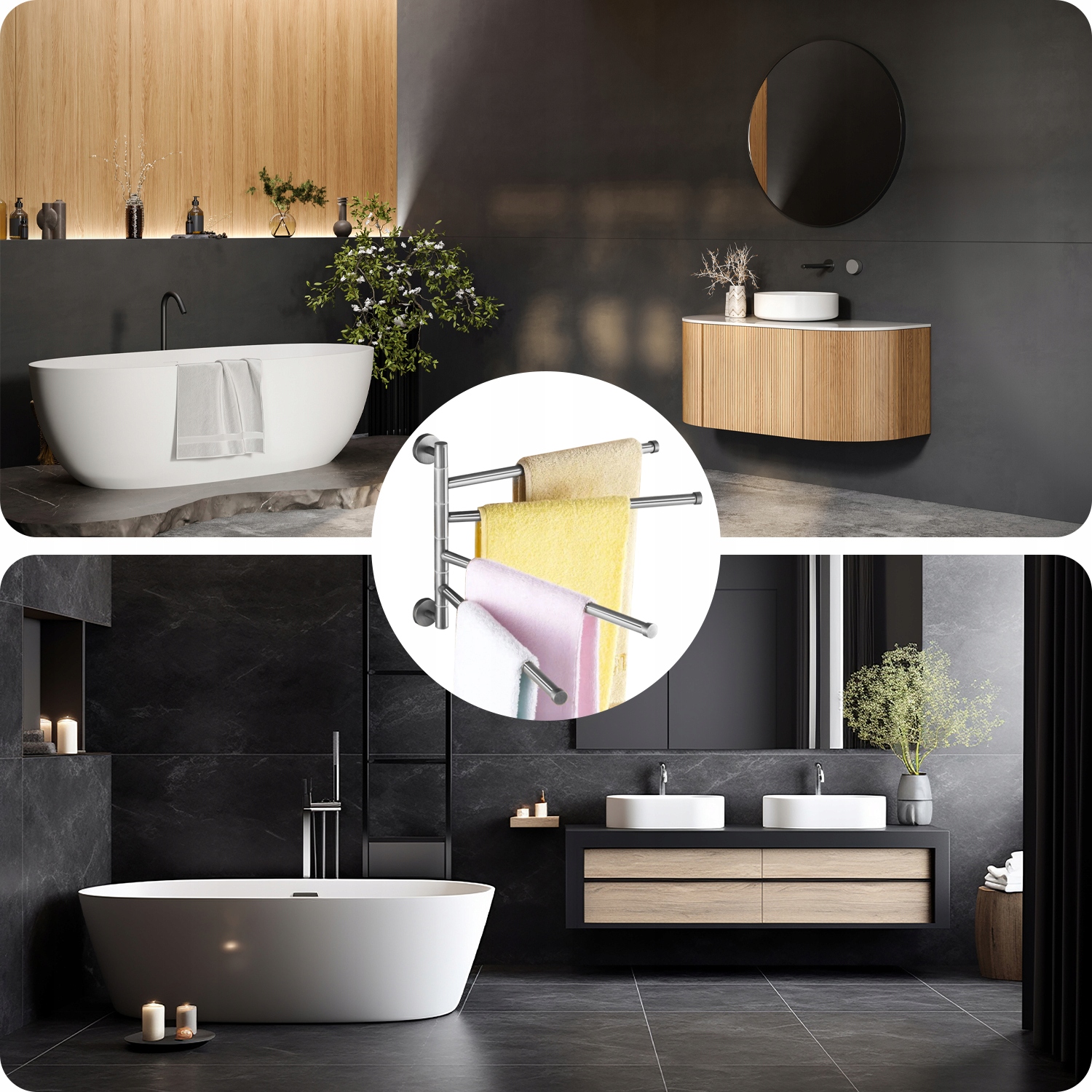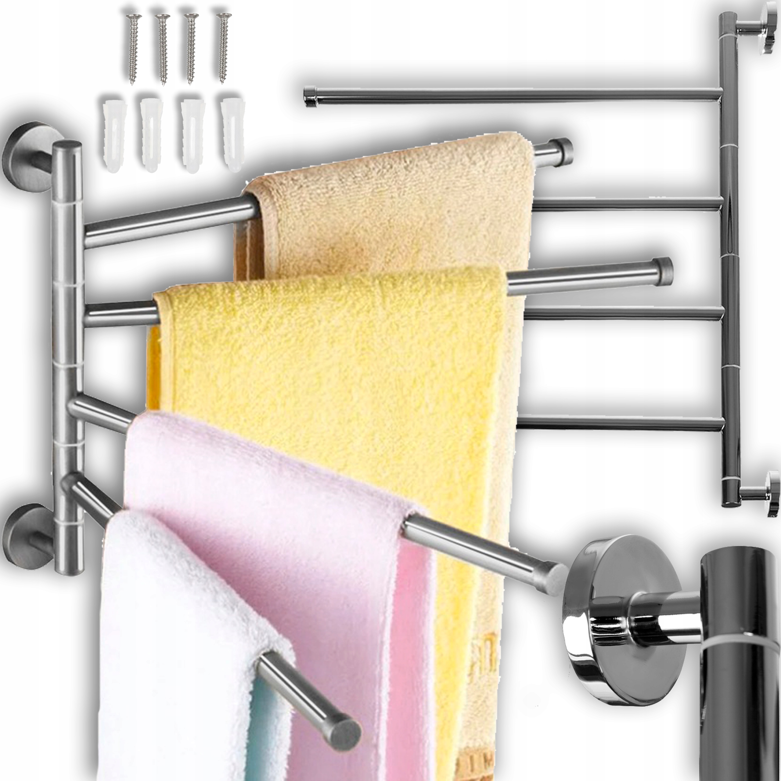 - ФУНКЦИОНАЛЬНАЯ И ЧЕТЫРЕХРУЧНАЯ - вешалка состоит из четырех сегментов, каждый из которых оснащен кронштейном, выдерживающим нагрузку 2,5 кг, что позволяет для хранения большего количества полотенец, одежды или других предметов в одном месте. Каждая консоль может независимо поворачиваться на 360 градусов, что позволяет легко и быстро менять положение сегментов.