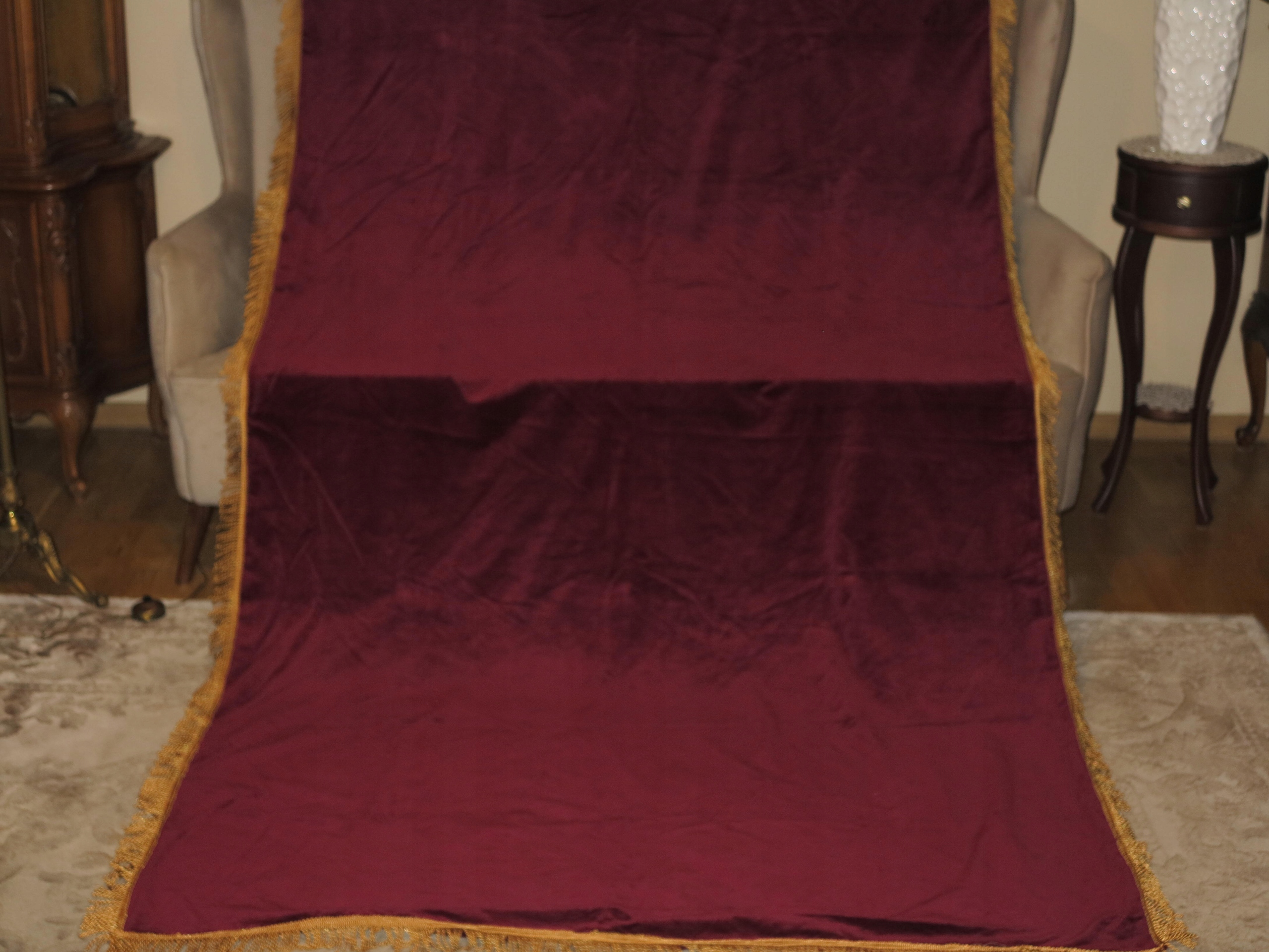 Предмет аукциона – неповторимо красивая скатерть из хлопкового бархата отличного качества. Скатерть отделана густой бахромой по всему периметру. Скатерть имеет размеры: длина 251 см, ширина 144 см + бахрома длиной примерно 5 см. Скатерть б/у, но в очень хорошем состоянии и качестве. Рекомендую, выглядит очень стильно.
