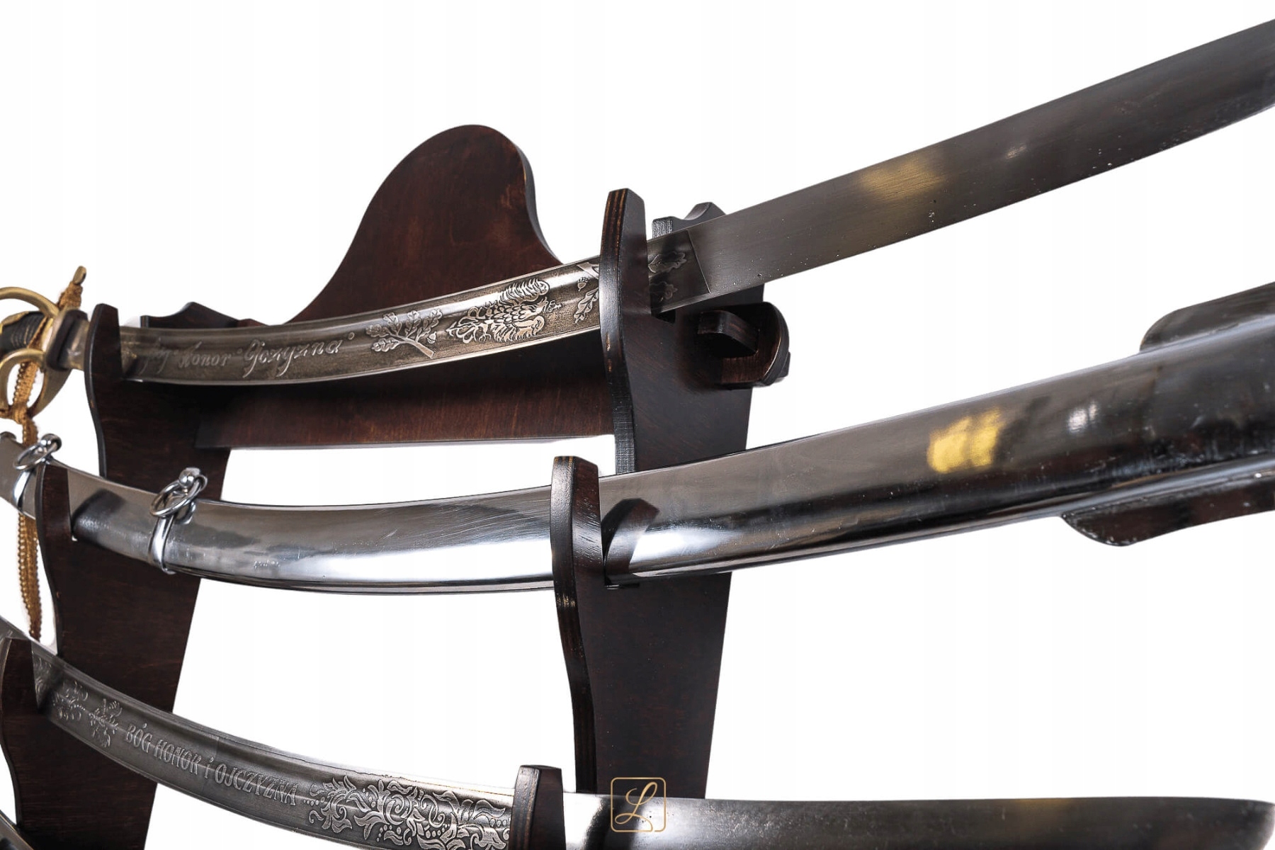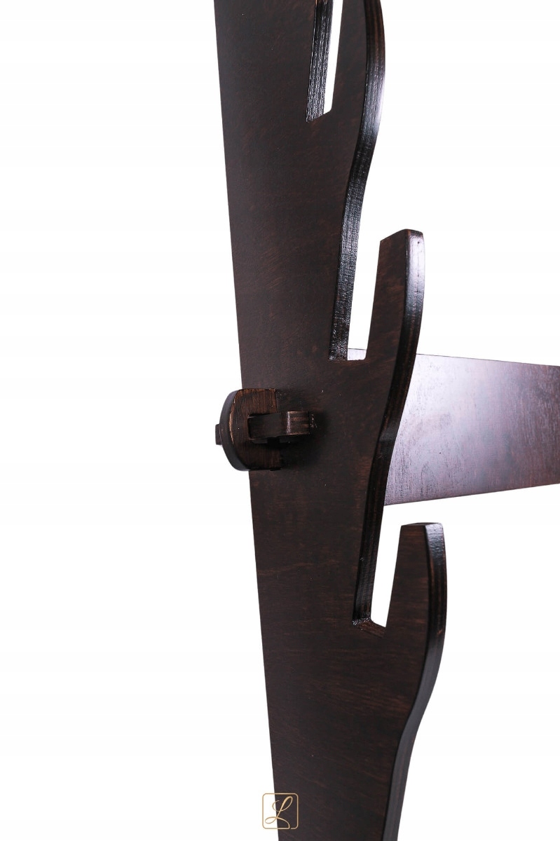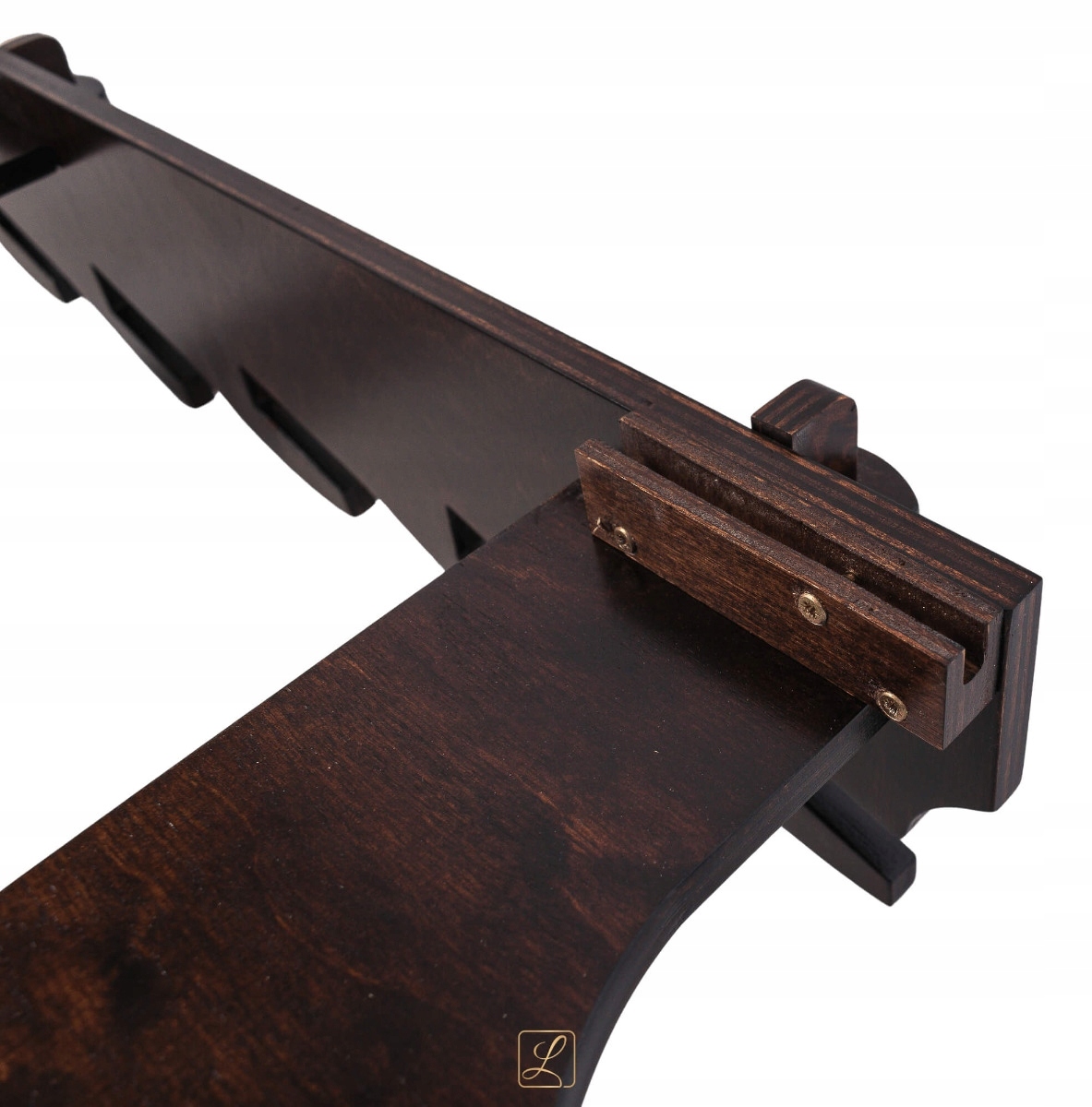 новый, сделанный из фанеры, окрашенной и лакированной вешалки до 4 комплектов сабли с влагалищем. Польский продукт - мы поддерживаем польские поделки. Мы увеличили ширину вилки до 40 см внутри, что гарантирует стабильное положение сабли - ручка не поднимает голову. Мы увеличили способность подставки до 8 позиций, каждую секунду вилку шире, чтобы повесить влагалище под саблей, которую мы показываем на фотографиях.
