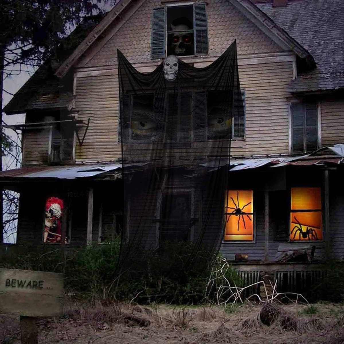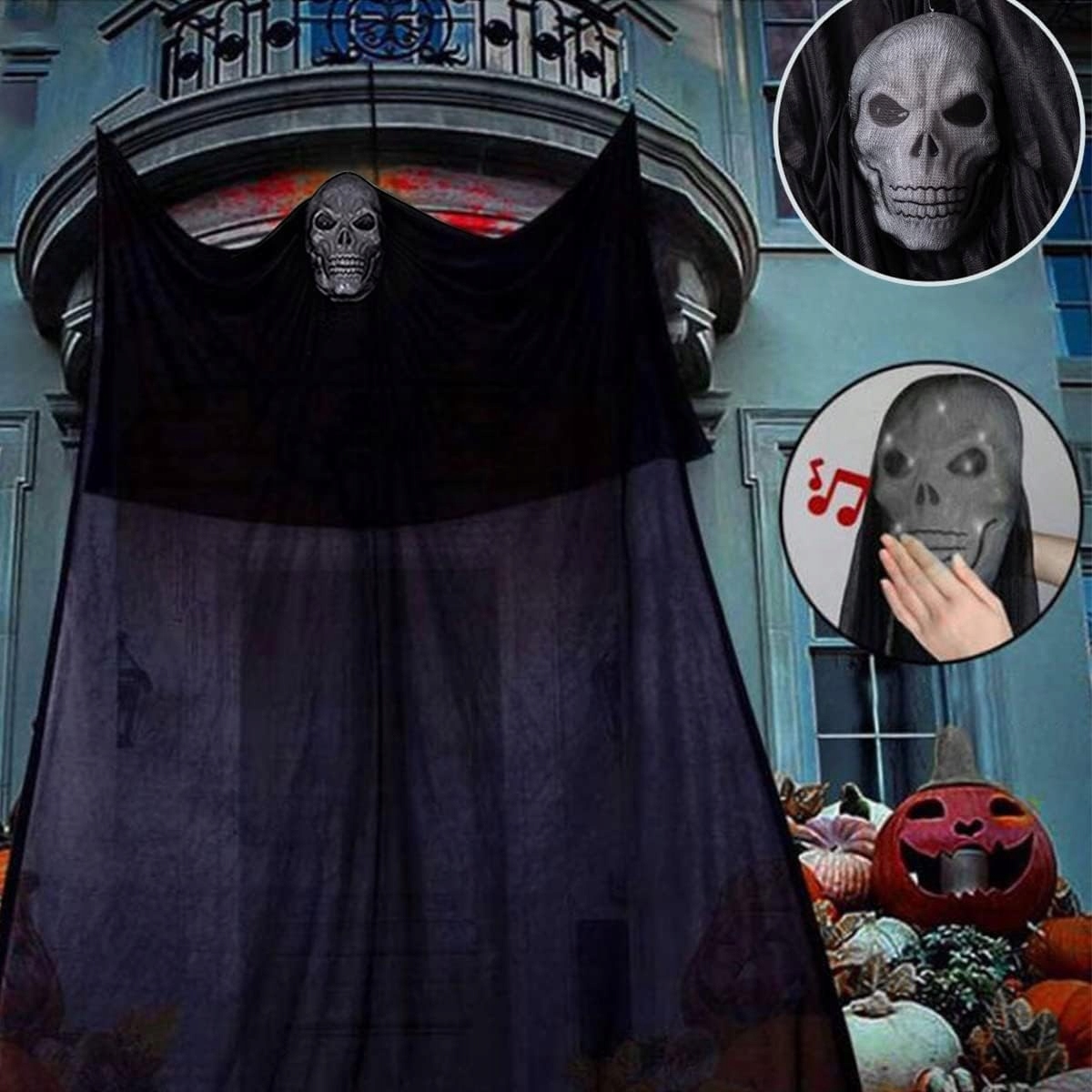 - ☠️В комплект входит длинная тюлевая маска-череп, глаза могут светиться красным, а призраки летают, когда ветер дует в полночь, создавая жуткую атмосферу.