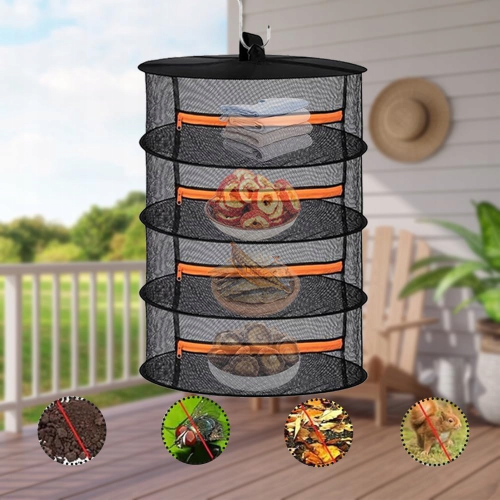 Наша 4-слойная сетка для сушных трав имеет высоту 80 см и диаметр 60 см, идеально подходит для сушки растений, трав, фруктов или одежды. Каждый слой имеет высоту 20 см, что обеспечивает большое пространство для различных продуктов. Благодаря встроенным крючкам в форме S вы можете повесить его в разных местах, избегая смешивания продуктов.