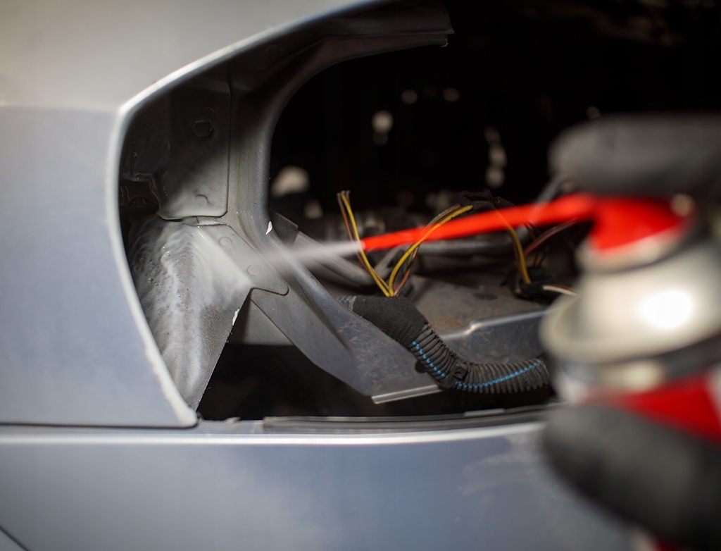- в качестве долговечного покрытия, защищающего от воздействия воды и соли в колесных арках и наружных поверхностях закрытых профилей шасси автомобиля.