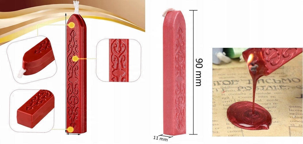 Сургуч веками использовался для запечатывания документов, писем, посылок, запечатывания бутылок и т. д. Преимуществом сургуча является хорошая адгезия к бумаге, стеклу и текстилю. Способ применения: Нагрейте восковую палочку в огне , держа его под углом.Через 30 секунд жидкий сургуч равномерно потечет в виде капель на герметизируемый объект. Можно растворить сургуч в сосуде (при температуре 70-80 градусов) и погрузить в жидкий сургуч горлышко закупоренной бутылки.