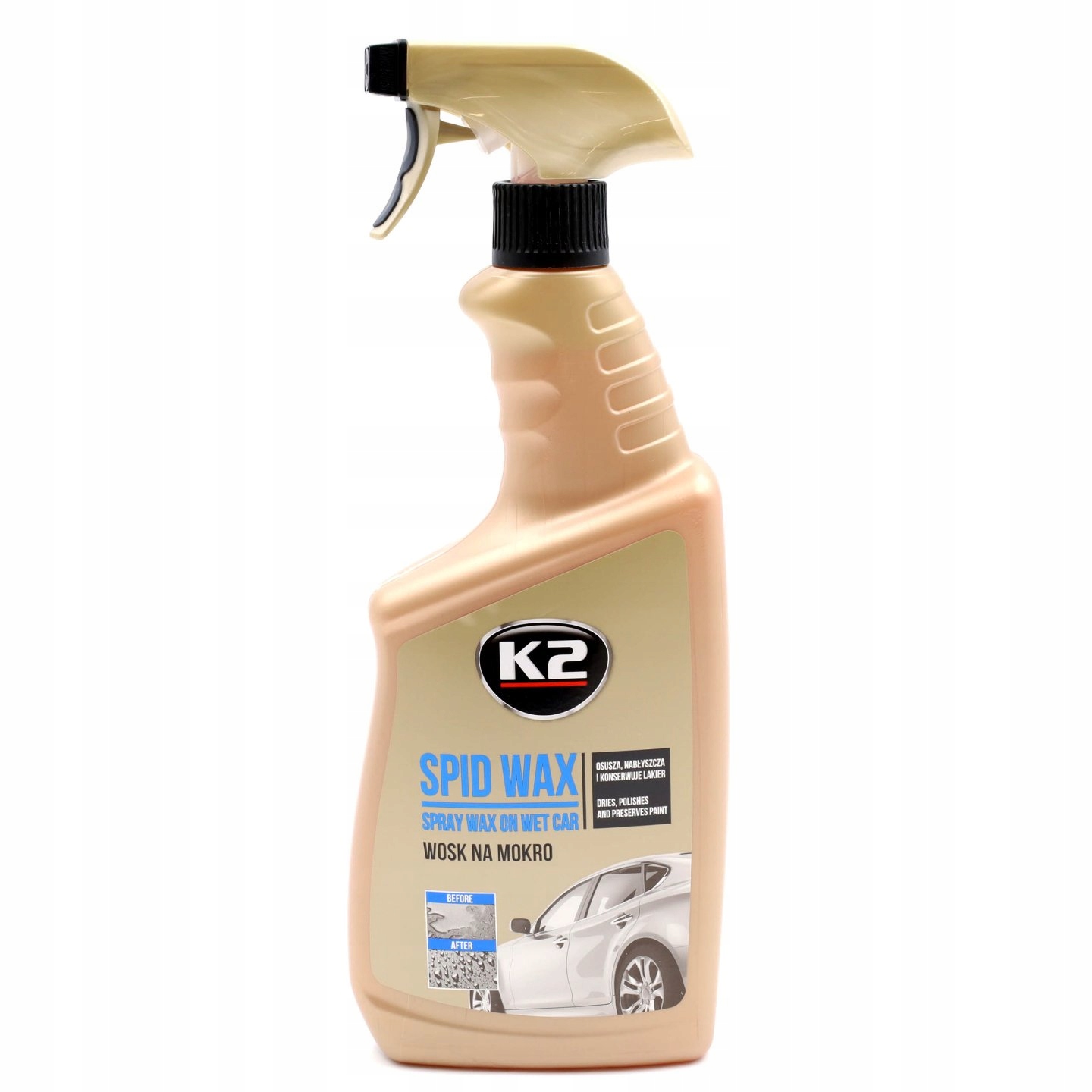 Синтетический сохнущий воск. Защищает краску сразу после мытья. Оставляет тонкий гидрофобный слой. Восстанавливает первоначальный цвет лака и подчеркивает его глубину. Придает блеск. После использования K2 Spid Wax нанесение другого воска не требуется. Продукт также можно наносить поверх сухого лака. Рекомендуется наносить на прохладный лак, в затененном месте.