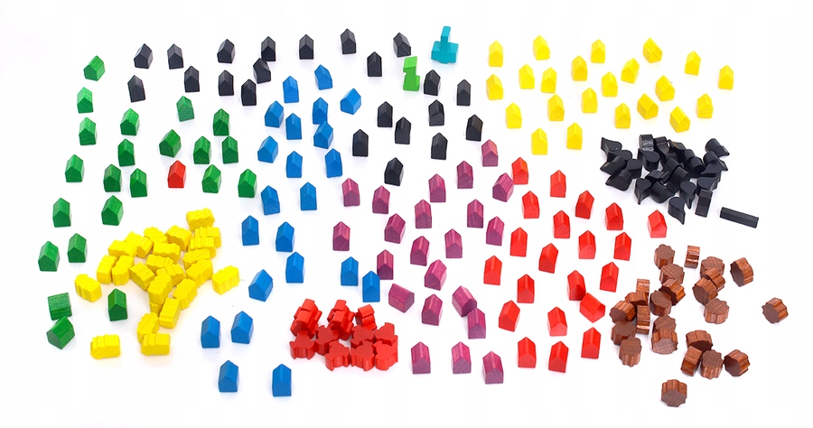 - Дополнительные деревянные элементы: аукционный молоток, 1 маркер скидки, 1 маркер «Стадия 2» и 1 тег "Конец игры"
