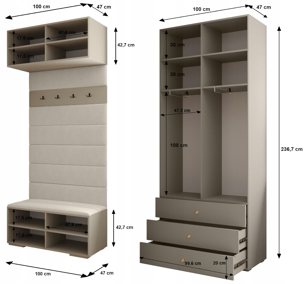 - 1 х Шкаф - 100 см/236,7 см/47 см