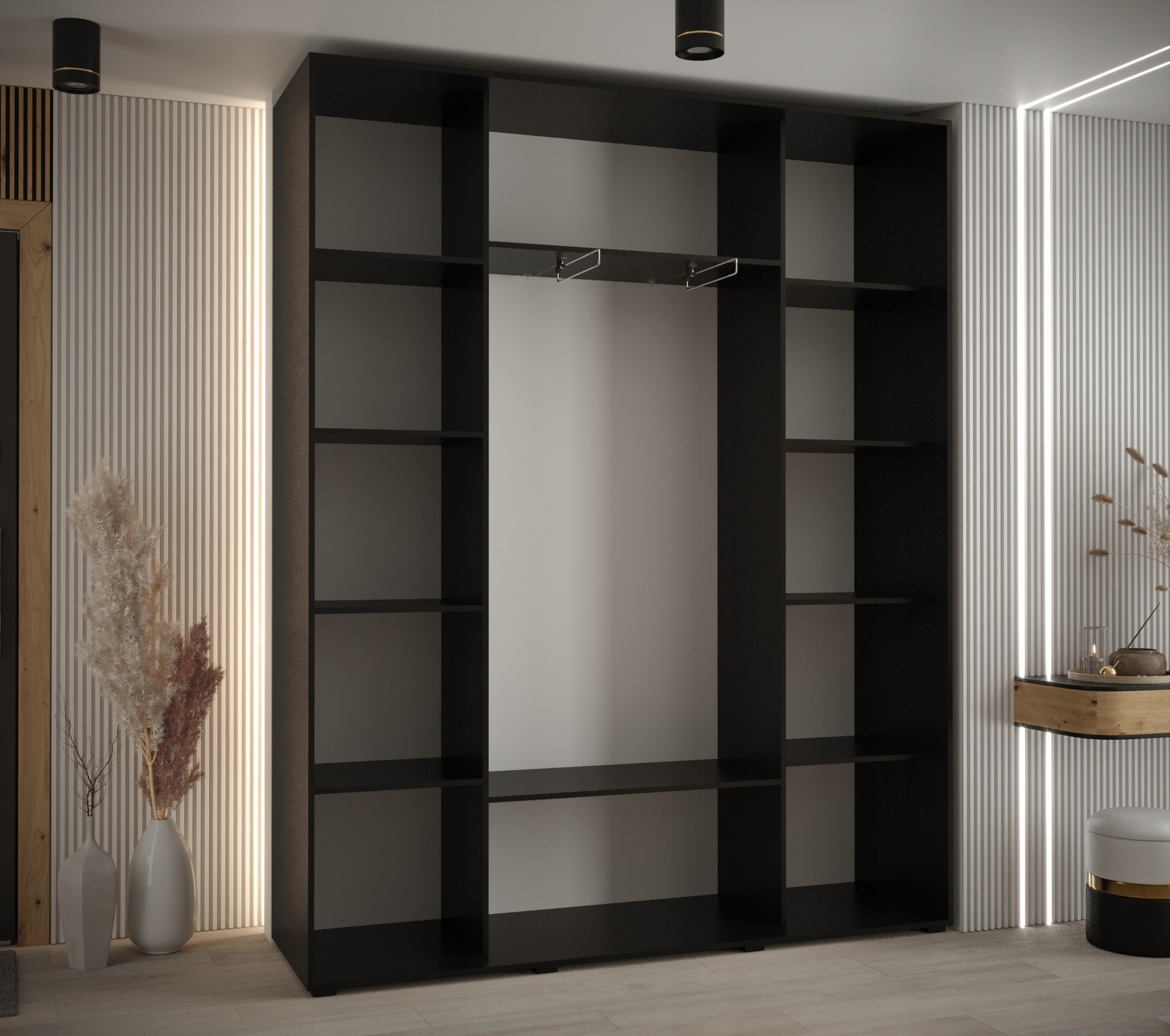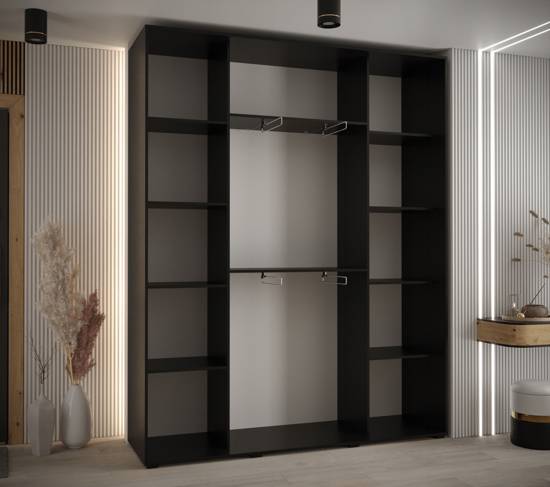- матовый черный + ремесленный дуб + рейки: черный