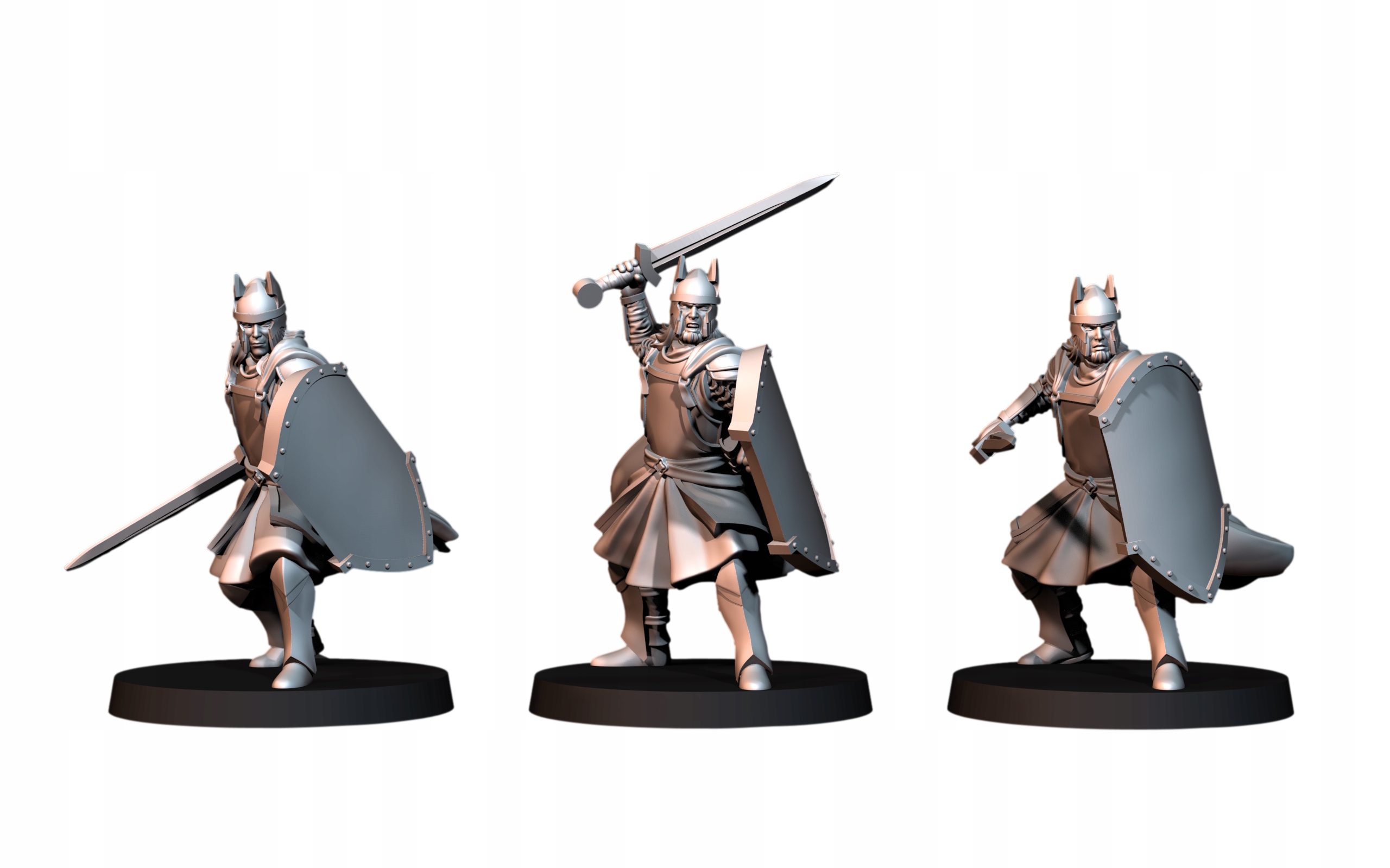 Высокие люди-воины с мечами и щитами - x1 - Статуэтки службы 3D-печати для ролевых игр или боевых игр
