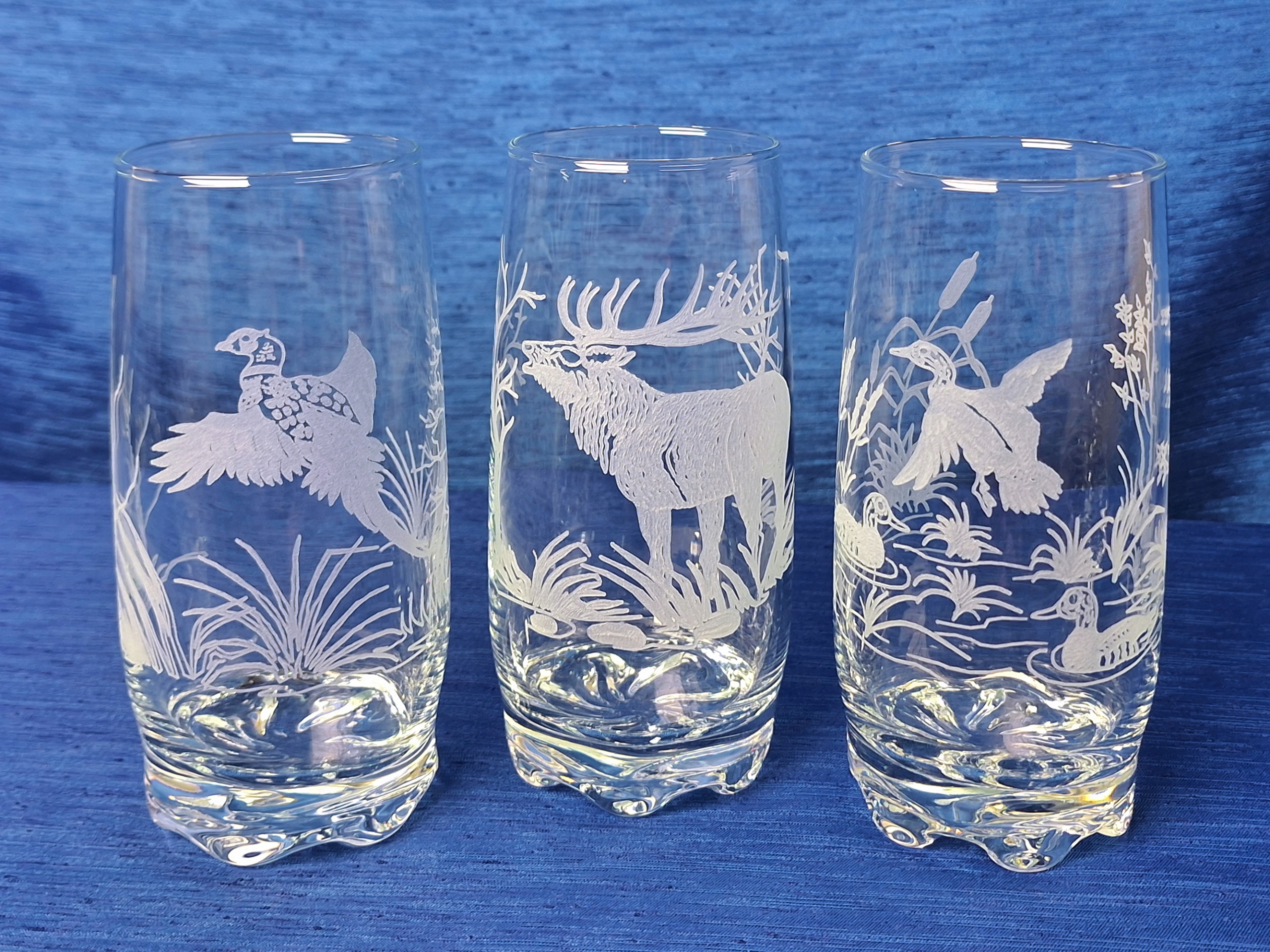Высокие очки для напитков лимон 350 мл украшенной охотничьей гравировкой 3