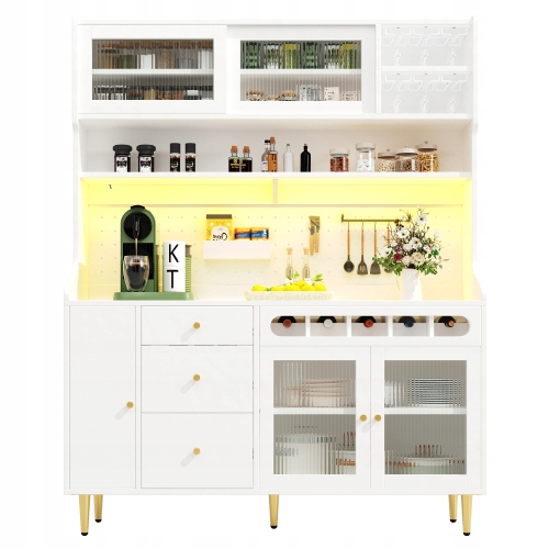 Умная система светодиодного освещения: этот высокий шкаф оснащен светодиодным освещением, которым можно управлять через приложение для смартфона и питается от USB. Цвет света можно свободно менять, а благодаря функции микрофона, музыкальным эффектам и таймеру он обеспечивает элегантную атмосферу и комфорт на кухне или в гостиной.