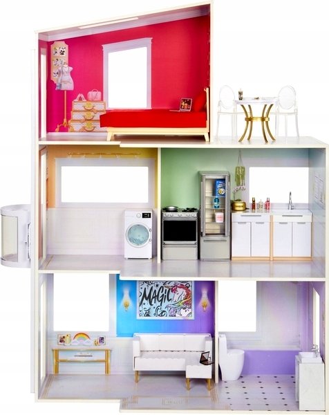 ВИСОКИЙ ДЕРЕВ'ЯНИЙ ЛЯЛЬКОВИЙ БУДИНОК MGA RAINBOW + АКСЕСУАРИ