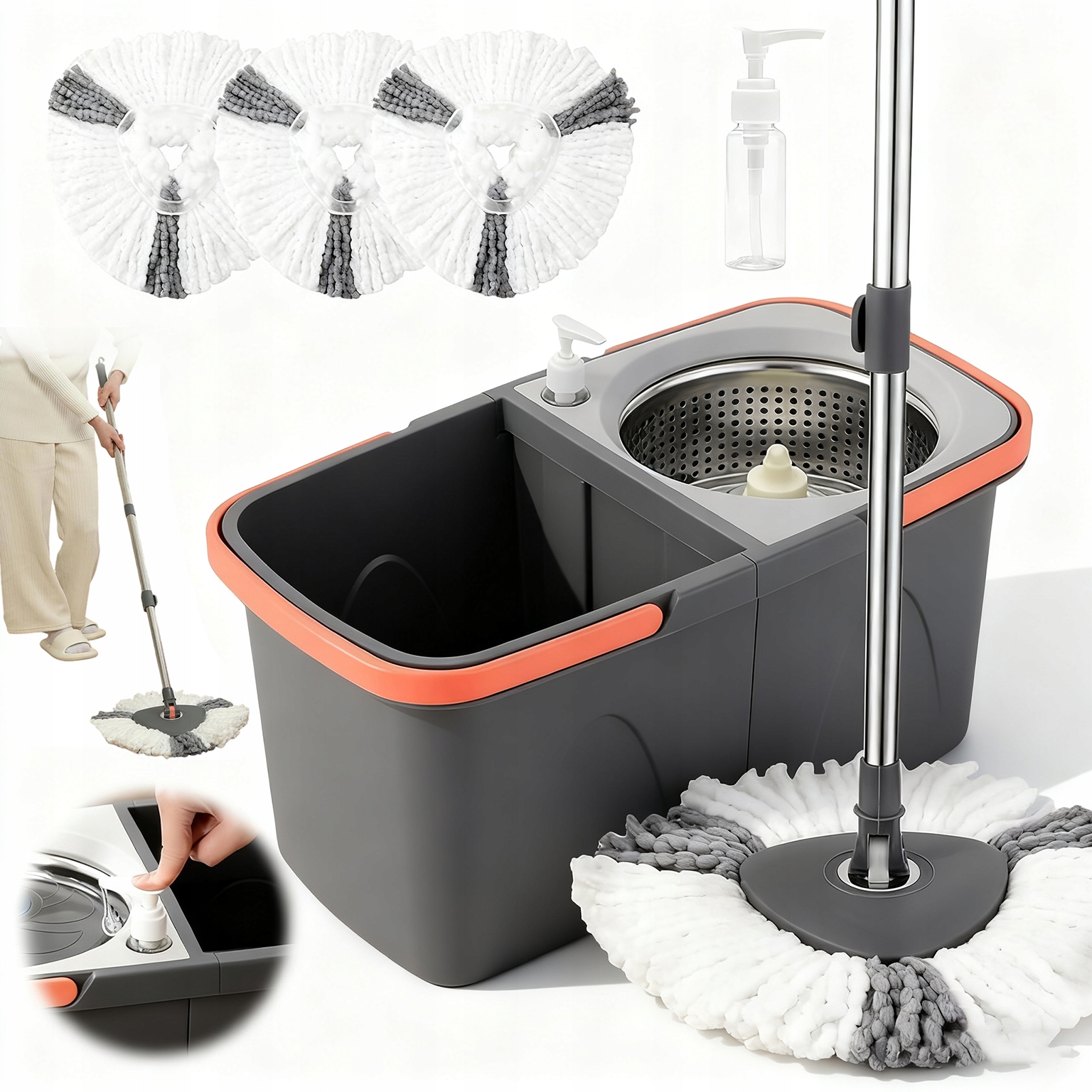 ВЫСОКОЭФФЕКТИВНАЯ ДВОЙНАЯ ВРАЩАЮЩАЯСЯ ШВАБРА С ВЕДРОМ ДЛЯ РАЗЛИЧНЫХ ПОЛОВ