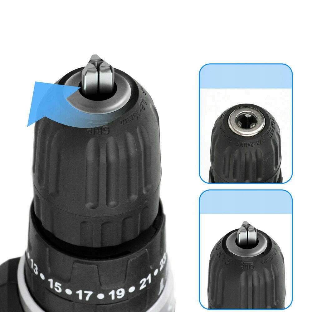 - БЕСКЛЮЧЕВАЯ РУЧКА С АВТОБЛОКИРОВКОЙ: для самого быстрого и простого сверления. замена бит.