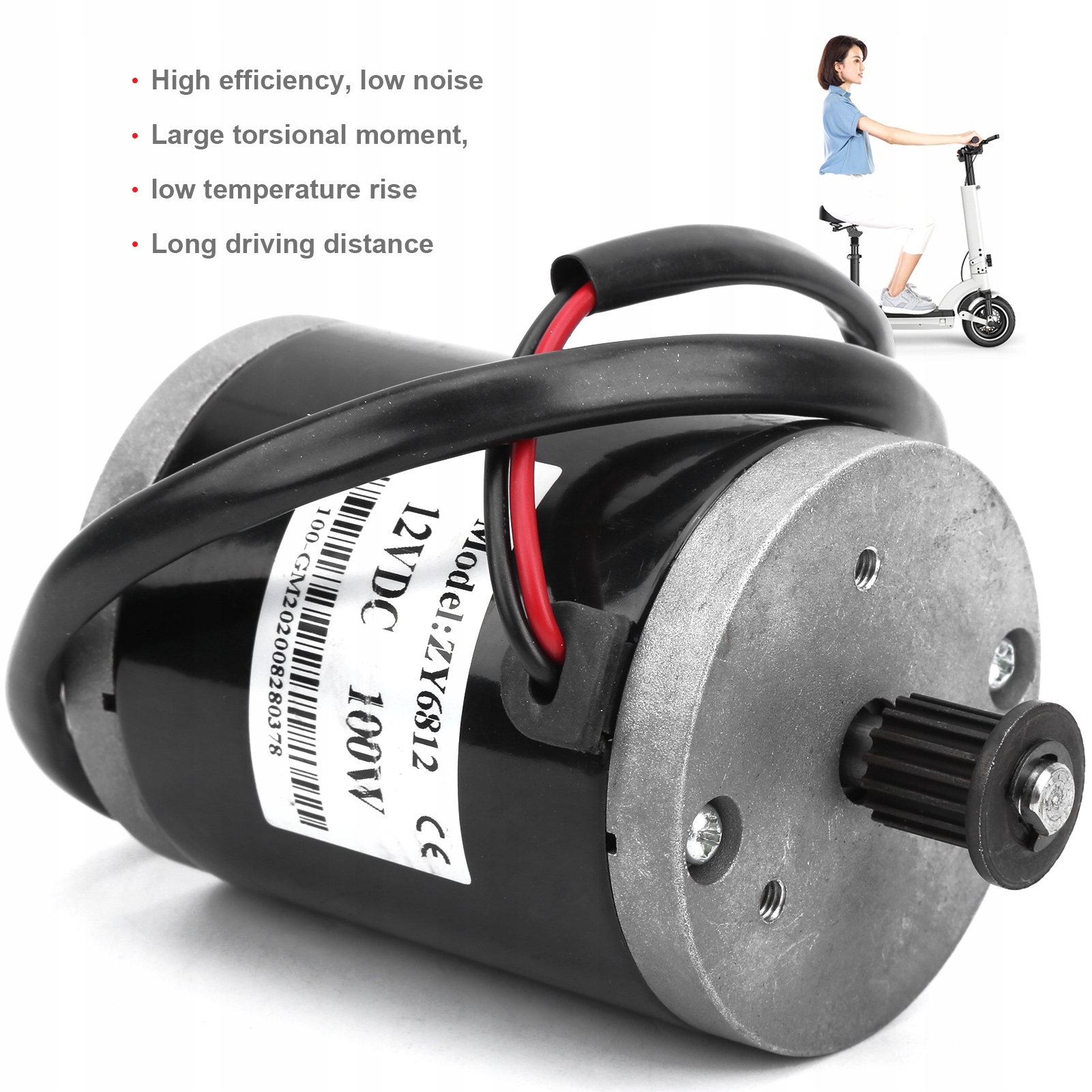 1, высокая эффективность, низкий уровень шума, большой крутящий момент, низкий рост температуры, поддержка больших расстояний. 2. Он может эффективно снизить ток, продлить срок службы батареи и уменьшить воздействие на батарею. 3. Благодаря хорошей производительности и хорошей стабильности этот двигатель имеет длительный срок службы в качестве аксессуара для скутера. 4. Этот высокоскоростной двигатель 12 В, 100 Вт подходит для электрических скутеров и электромобилей малой мощности. 5, поставляется с ремнем диаметром 384 мм и шагом зубьев 3 мм, отличное качество изготовления.