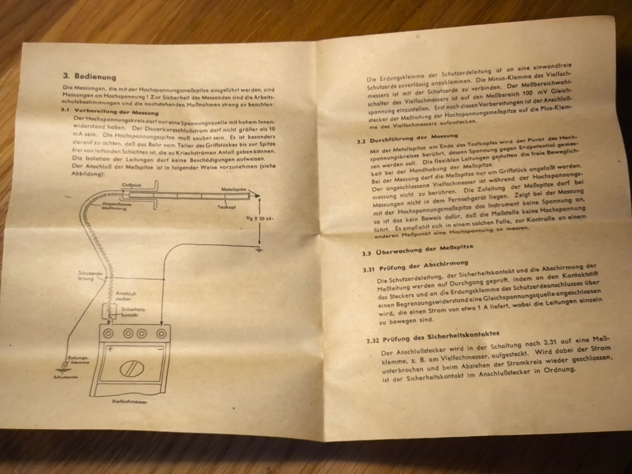 Оригинальный высоковольтный щуп (Hochspannungsmeßspitze) для мультиметра UNI-III, производства VEB MTM в 1964 году (Messtechnik Mellenbach, Тюрингия, ГДР). Полный экземпляр - измерительная головка с резисторами, ручка с защитным экраном, экранированный кабель с предохранительной вилкой, защитный кабель с зажимом заземления, оригинальная коробка и инструкция на немецком языке.