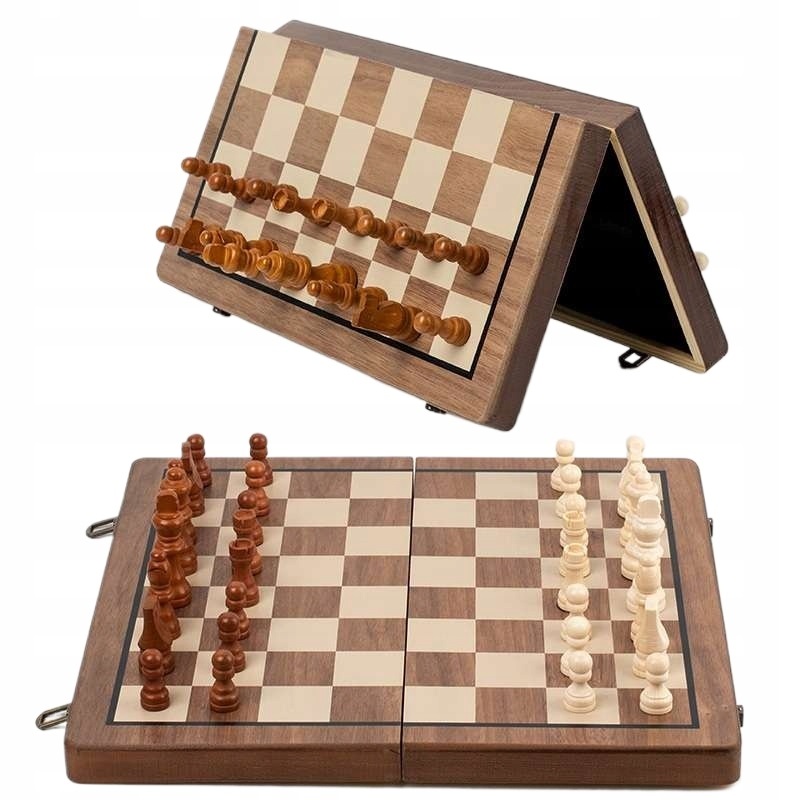 Высококлассные деревянные магнитные шахматы ручной работы 2 в 1 40х40см.