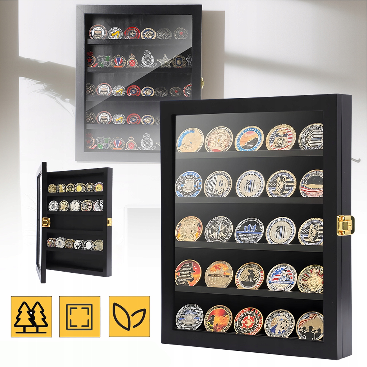 ✅[Несколько мест]: Благодаря 5 полкам и двойным слотам на каждой эта витрина обеспечивает максимальное пространство при компактном дизайне и идеально подходит для хранения вашей коллекции монет, медалей и других памятных вещей.