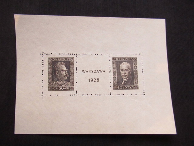 ФИЛА ВАРШАВСКАЯ ВЫСТАВКА 1928 ГОДА БЛОК БЛ.1 ПИЛСУДСКИЙ-МОСКИЦКИ ГАРАНТИЯ PZF