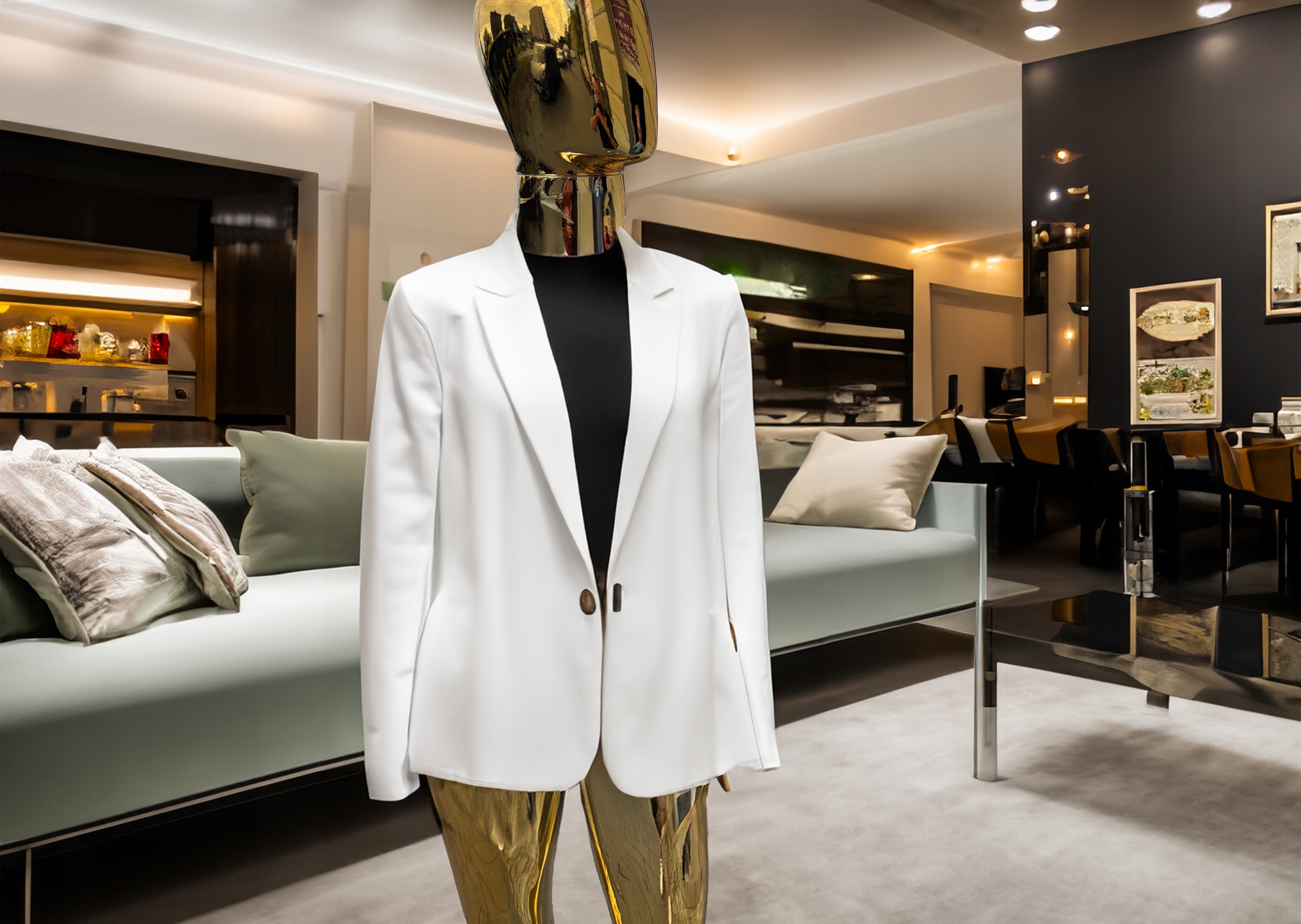 Выставочный магазин манекен. Золотой мужской стеклянный стеклянный глянец