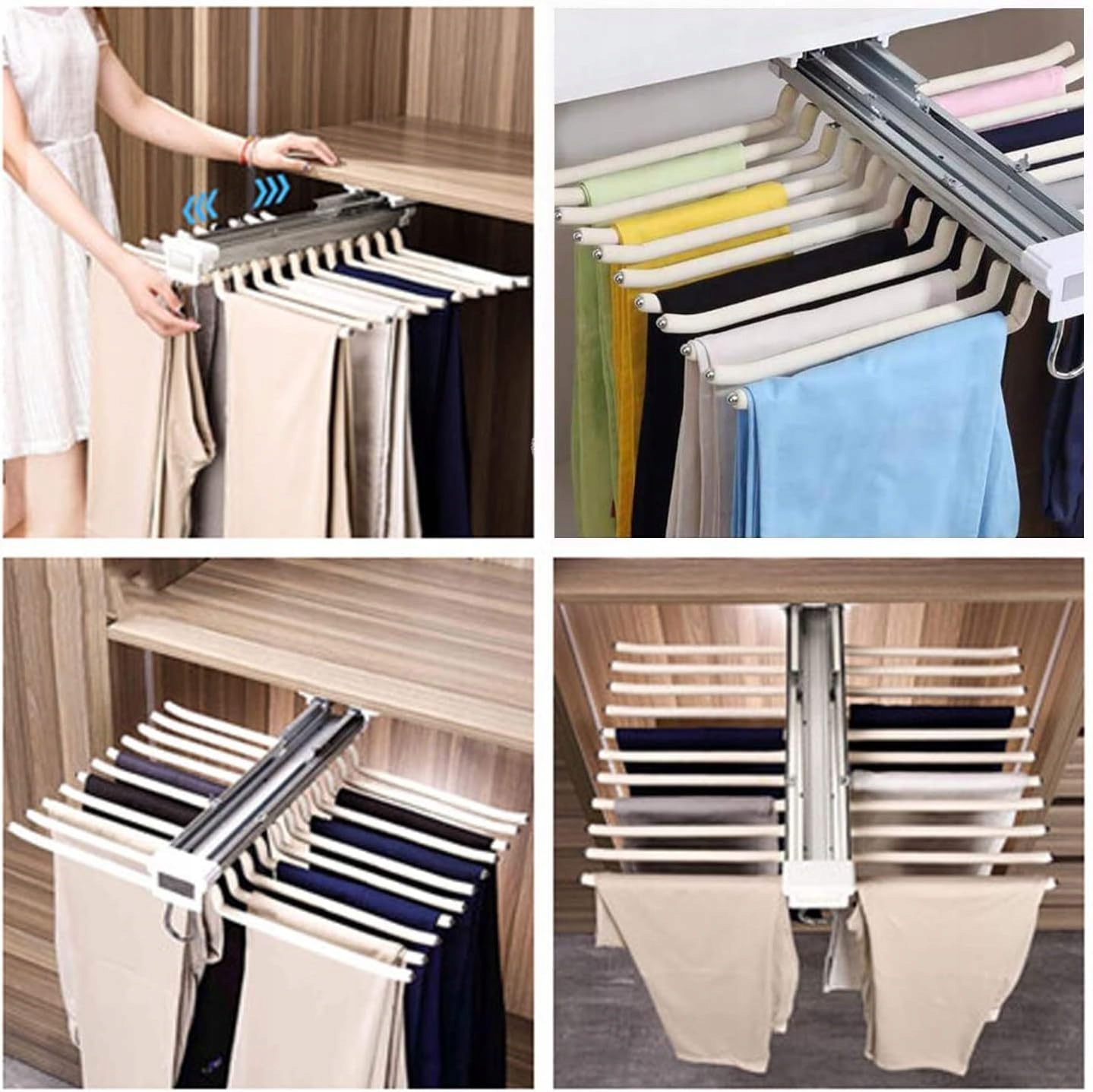 ✅Выдвижная вешалка для брюк с двухсторонней амортизацией обеспечивает бесшумную и комфортную работу, подходит для повседневного использования и вмещает 22 пары брюк.
