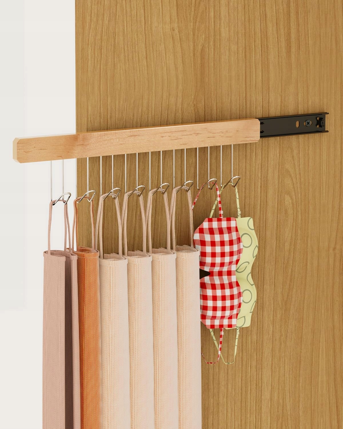 Организуйте свой гардероб с головой! Эта твердая, выдвижная вешалка с деревянной ручкой и металлическими крючками позволяет вам удобно подвесить одежду, сумочки, ремни или аксессуары - без беспорядка и с легким доступом ко всему.