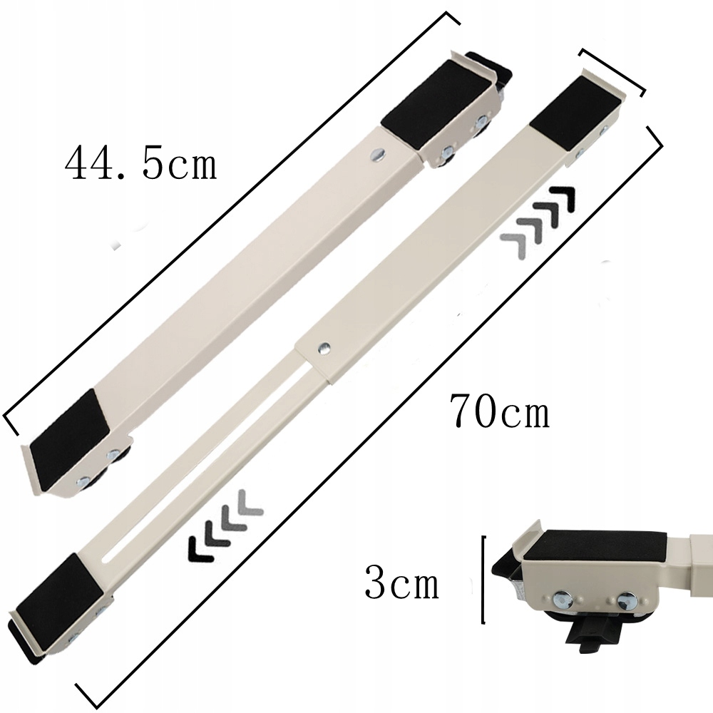 ✔ 300 кг для каждого движущегося устройства. Поместите подставку непосредственно под холодильник, стиральную машину или другие бытовые приборы, а затем поднимите тормоза на обоих концах, чтобы перемещать