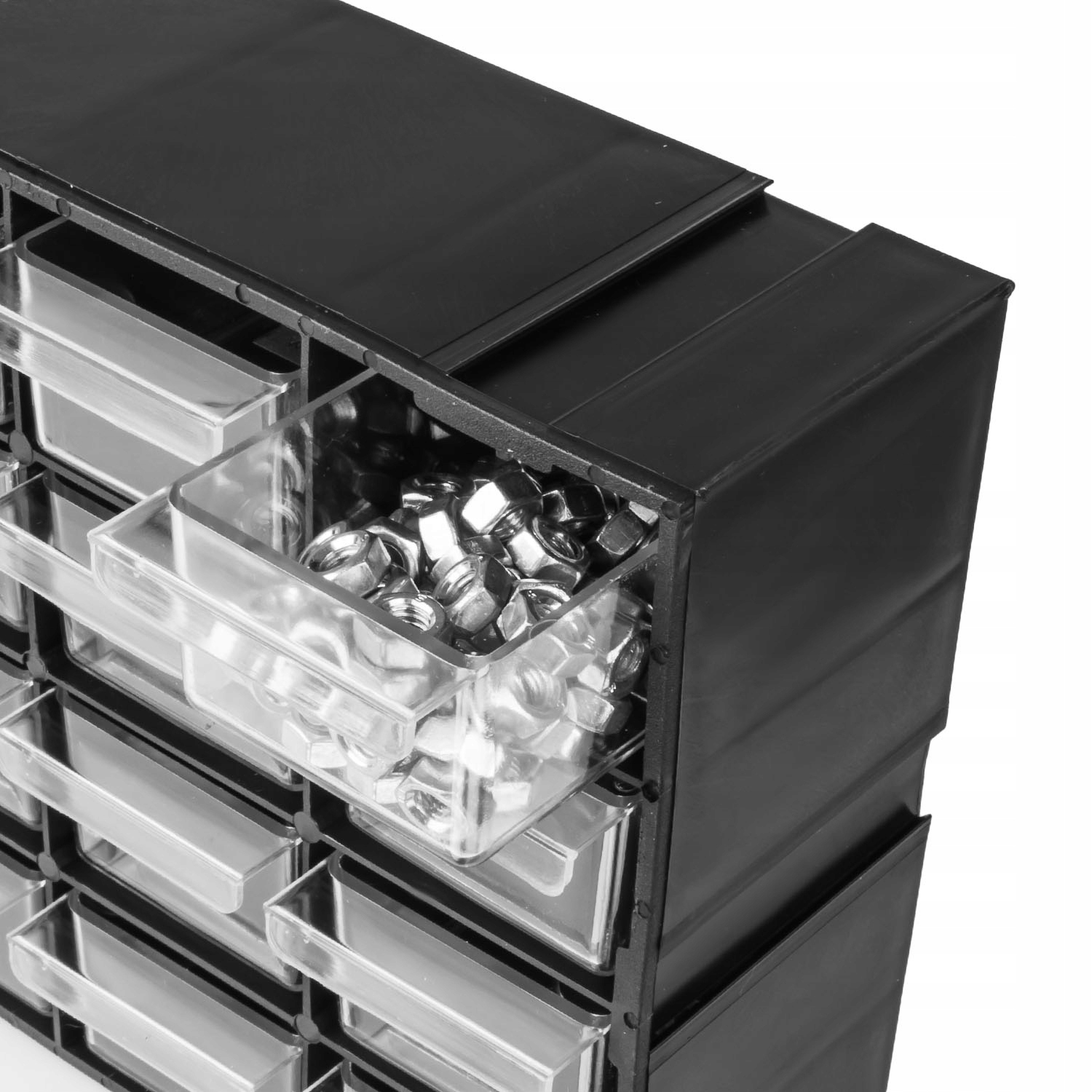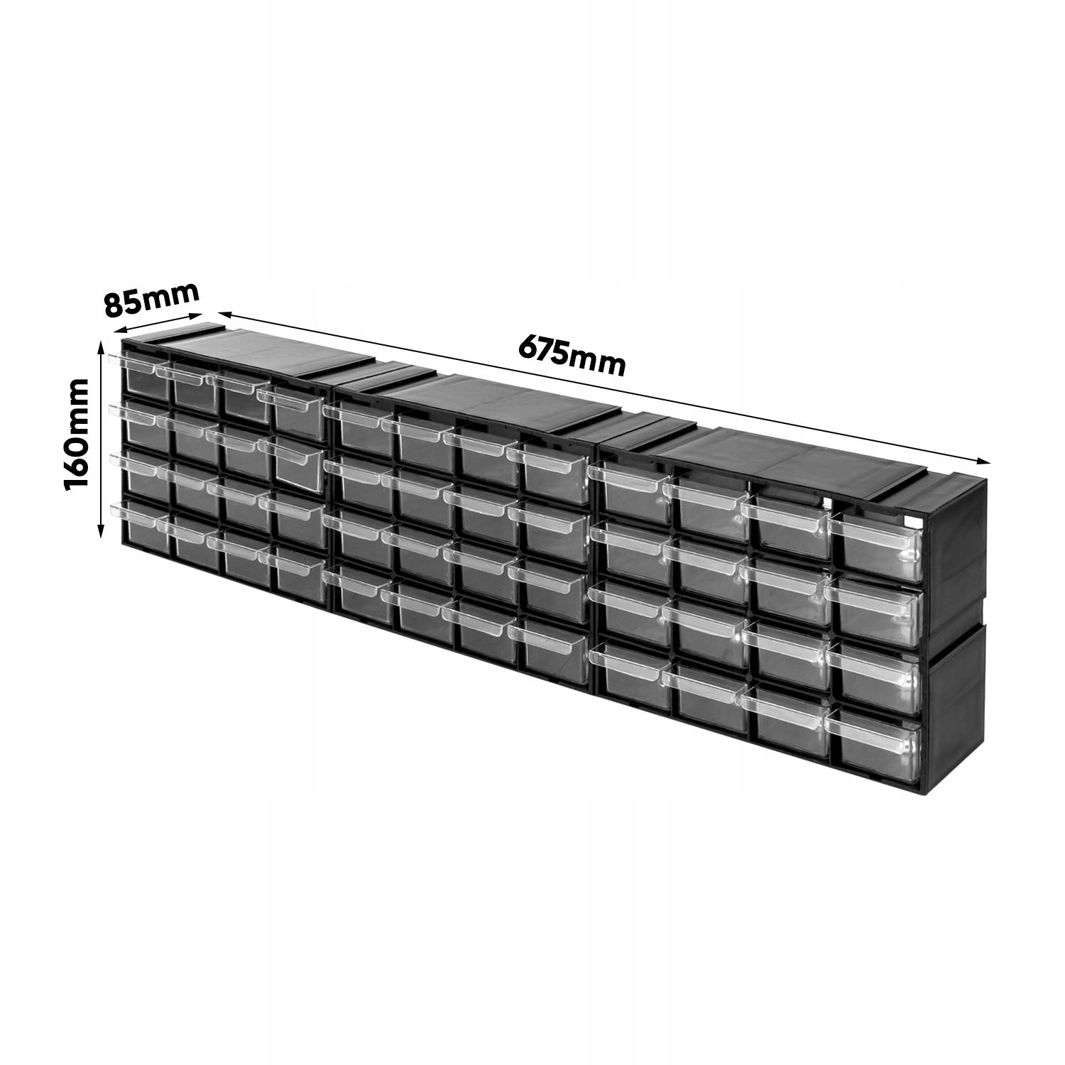Пластиковый шкаф состоит из 48 прозрачных ящиков. Это идеальный способ хранения мелких элементов, шурупов, гаек, камней и т. д. Каждый из отдельных модулей можно соединить друг с другом с помощью специальных выступов, в зависимости от ваших потребностей. Конструкция шкафа изготовлена из ударопрочного материала.
