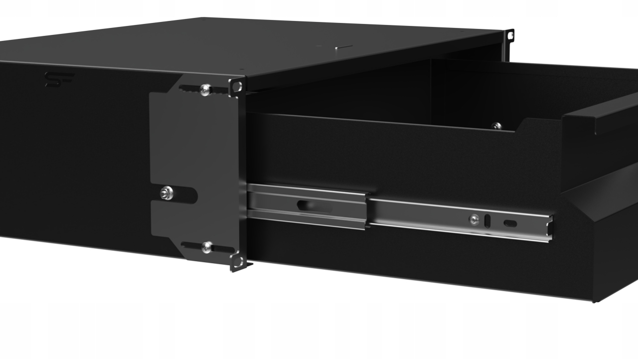- Теперь регулируемые: ящик можно перемещать внутрь или наружу на 20 мм относительно стойки. монтаж на RACK-рейках.