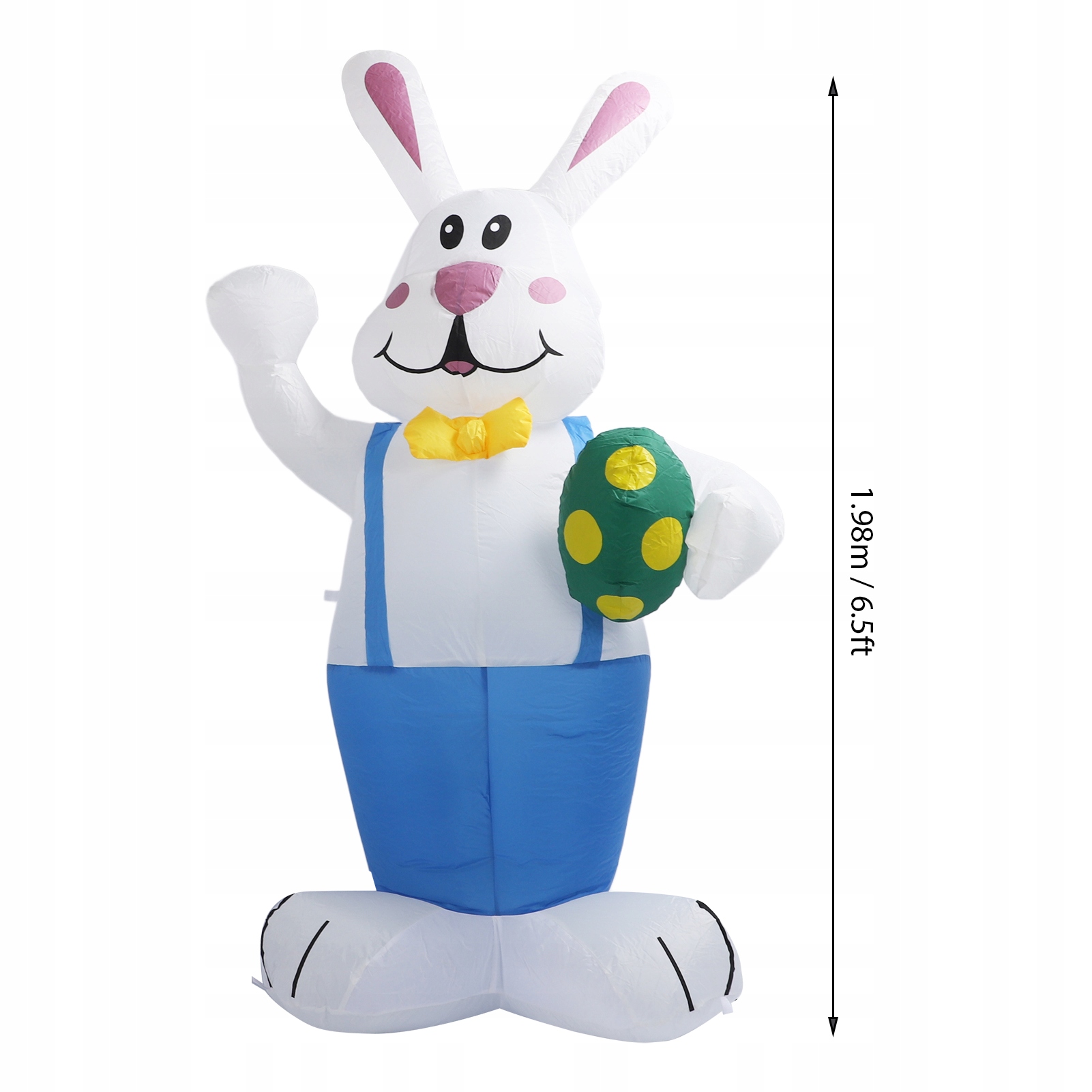 2. Polyester 210T: надувной пасхальный кролик с яйцом, удерживаемым из прочного и утолщенного полиэстера 210 Т, водонепроницаемой, ветрозащитной, легкой, устойчивой к увядению, устойчивости к разрыву и морщиникам, а также с превосходными швами, предотвращающими слезы. Это может быть использовано в дождливую или снежную погоду. Не забудьте защитить источник питания от смачивания.