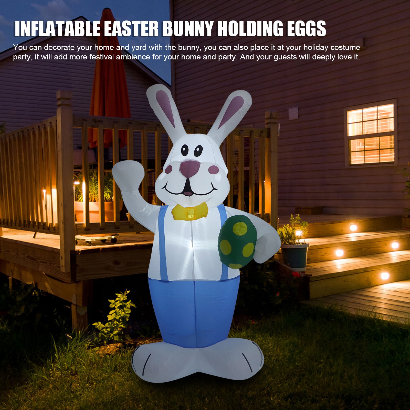 1. Надувные пасхационные украшения Стоящие кролика с яйцом: вы можете украсить свой дом и двор кроликом, вы также можете поставить его на праздничную вечеринку костюма, это добавит больше фестивальной атмосферы в вашем доме и на вечеринке. И ваши гости будут в восторге.