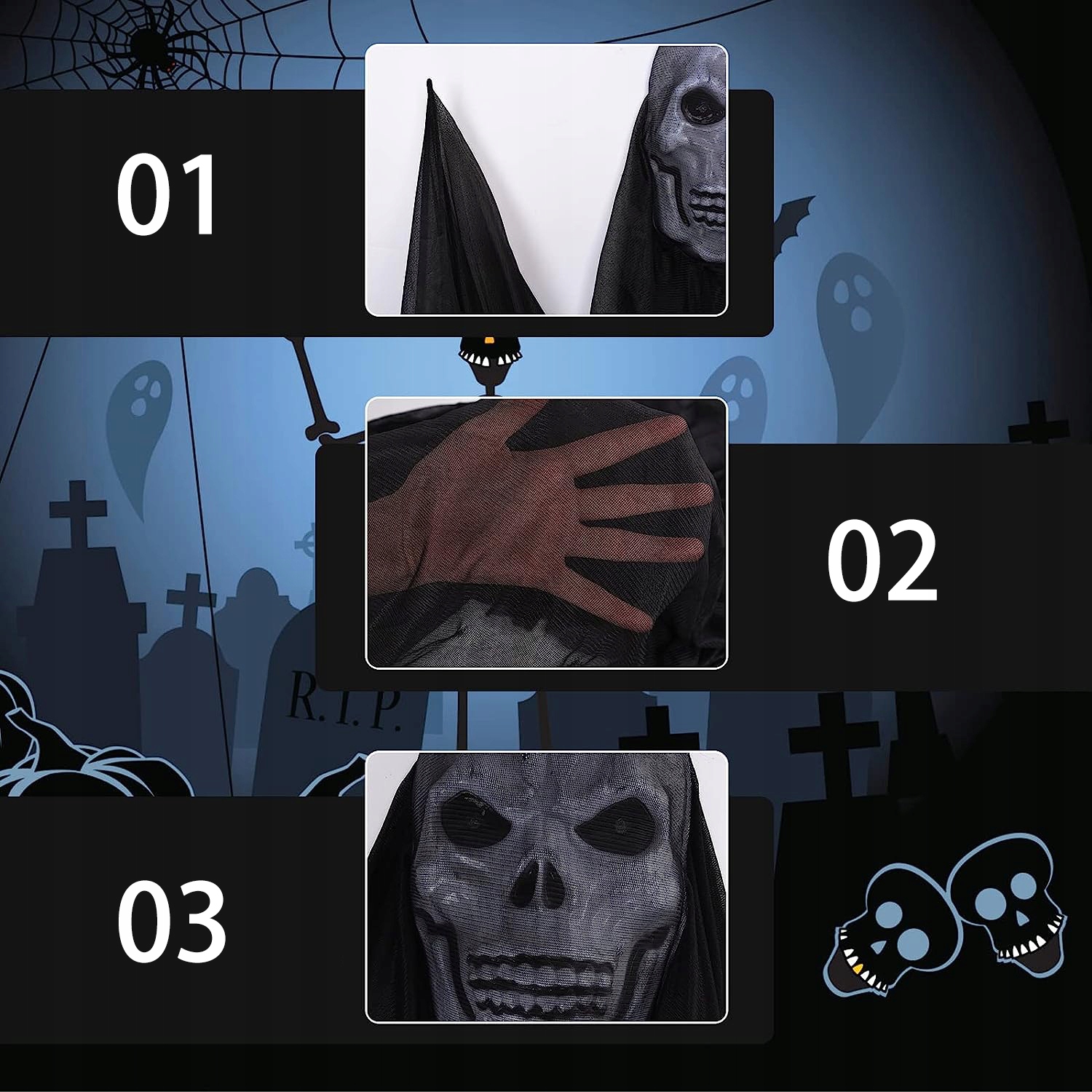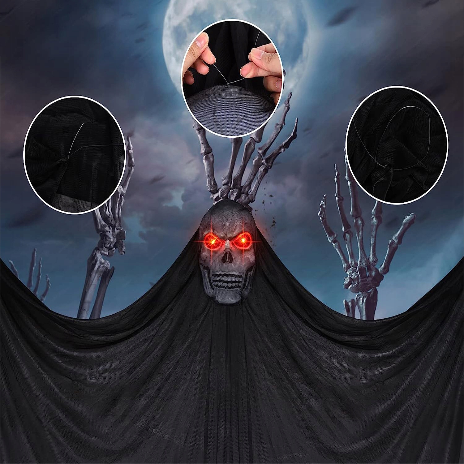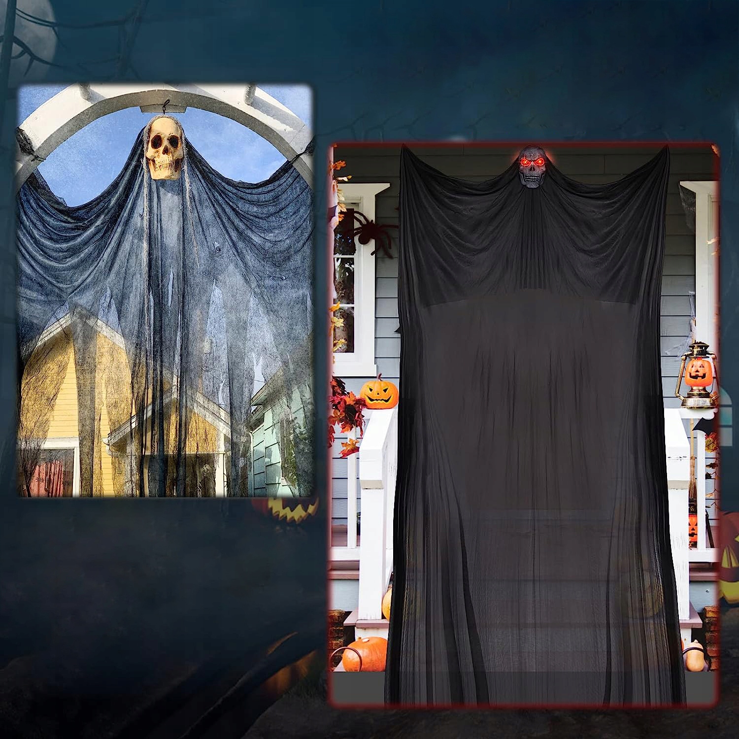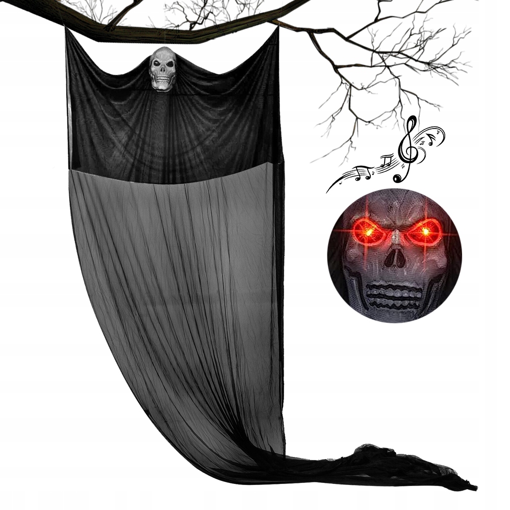 - 👻Отличный выбор для жутких вечеринок — с длинными тюлевыми масками-черепами призраки будут летать, когда ветер поднимается в полночь, создавая жуткую атмосферу и даря вашим соседям незабываемые впечатления от Хэллоуина. Они отлично подходят для украшения и отпугивания гостей. Отличный реквизит для Хэллоуина!