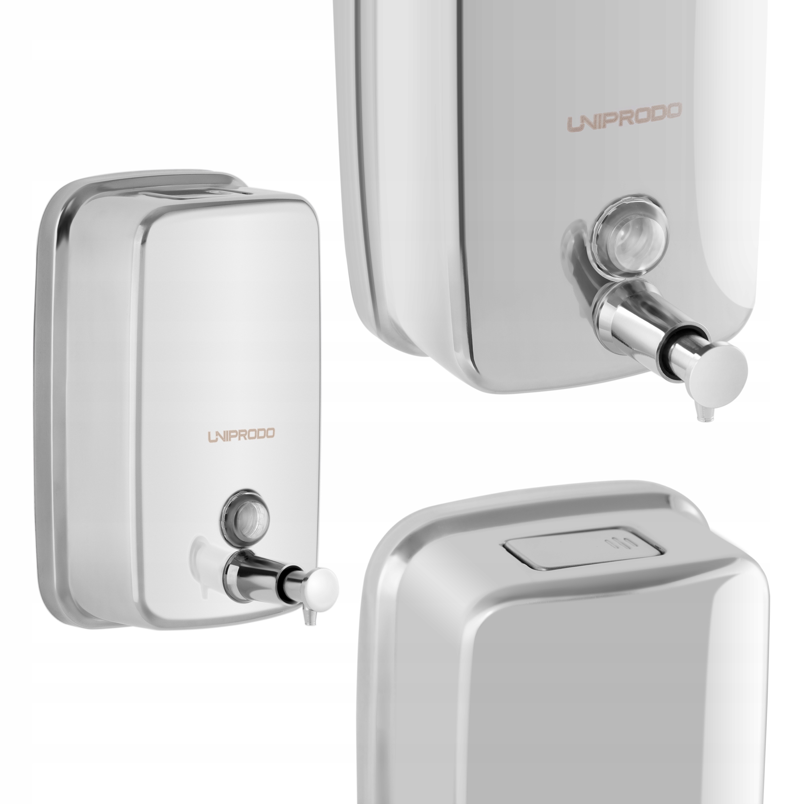 Изготовление из нержавеющей стали делает дозатор мыла Uniprodo прочным и эстетичным. Используемый материал имеет элегантный блеск. Кроме того, оборудование легко содержать в чистоте.