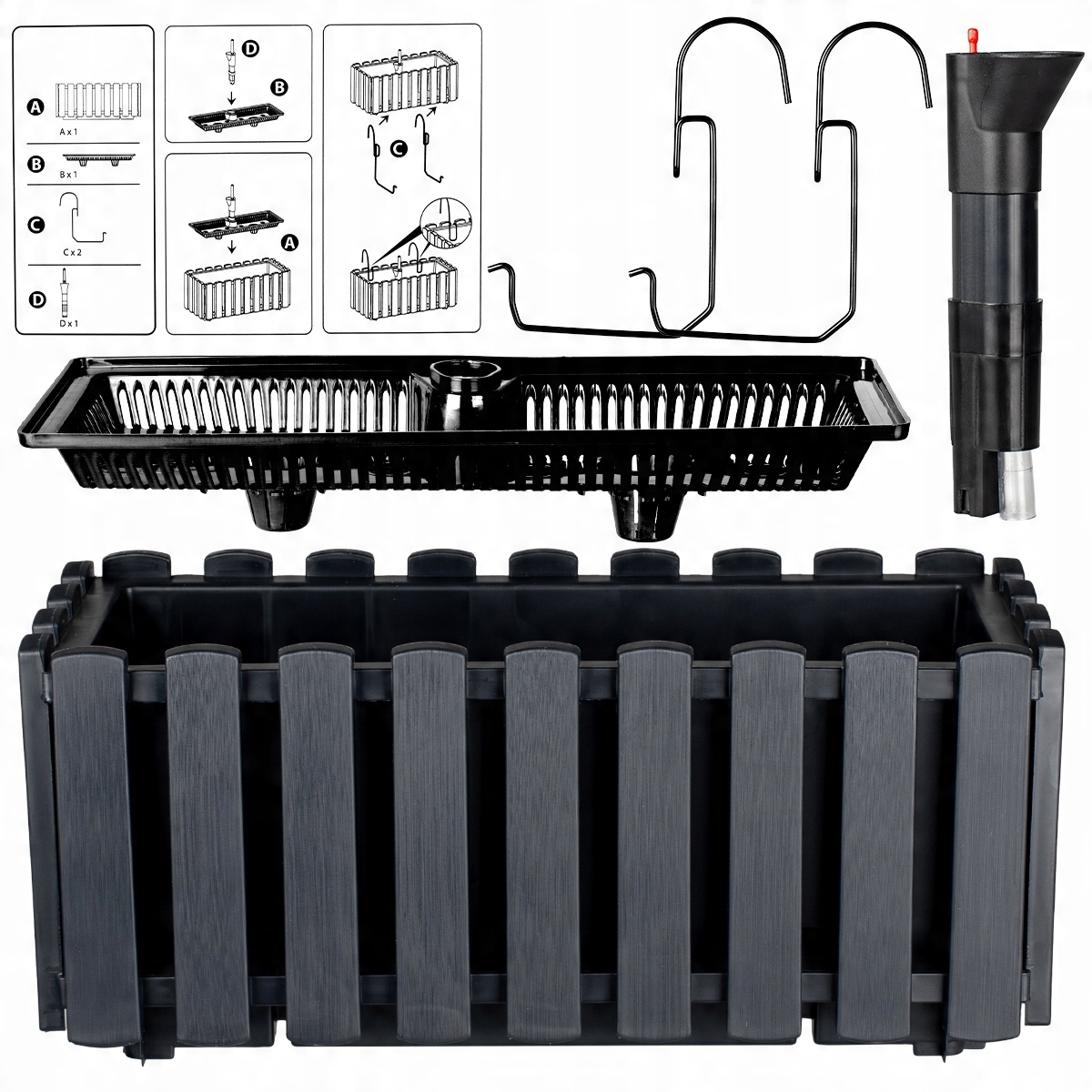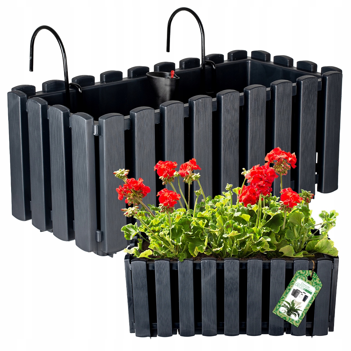 Balcony Box, напоминающий классический деревянный забор, изготовленный из прочного пластика, который устойчив к царапинам и переменным погодным условиям . Благодаря этому это будет работать отлично как в помещении, так и снаружи . Универсальный дизайн соответствует различным аранжировкам - от гостиной до сада. Порт имеет в вставке в наборе, который позволяет надлежащему орошению растений