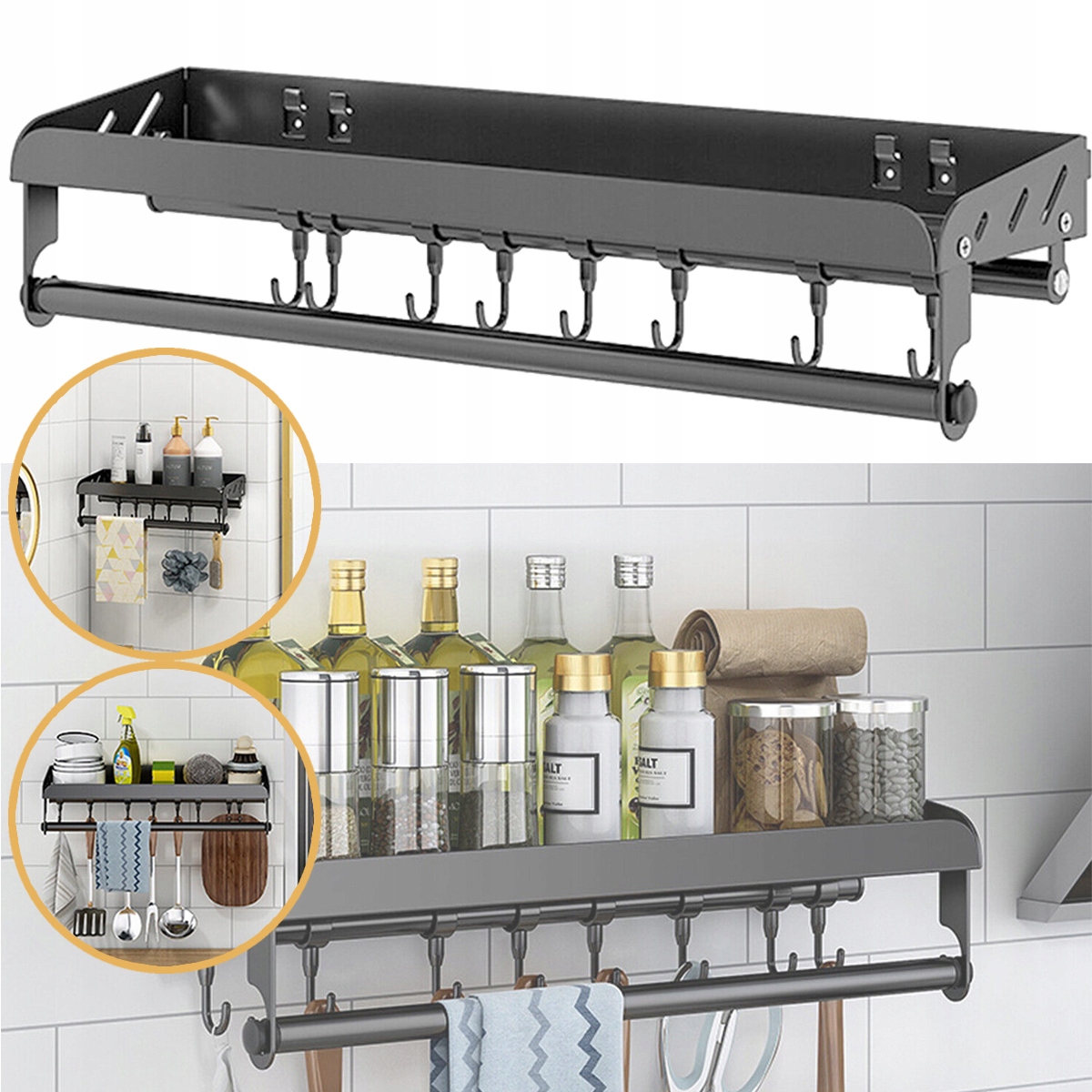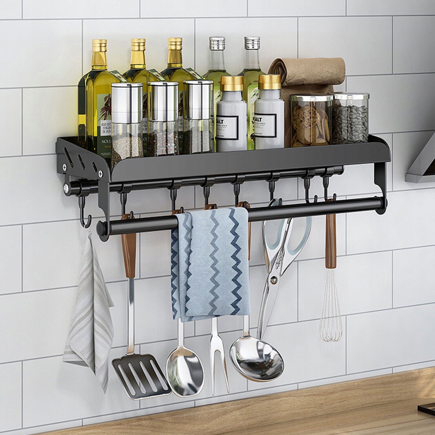 полка для хранения специй идеально подходит для размещения банок со специями, консервированными, специями, чаем, солью, перцем, маслом, соевым соусом, молоком, каждый день на кухне. Кухонная посуда можно повесить на крючке с гидом.