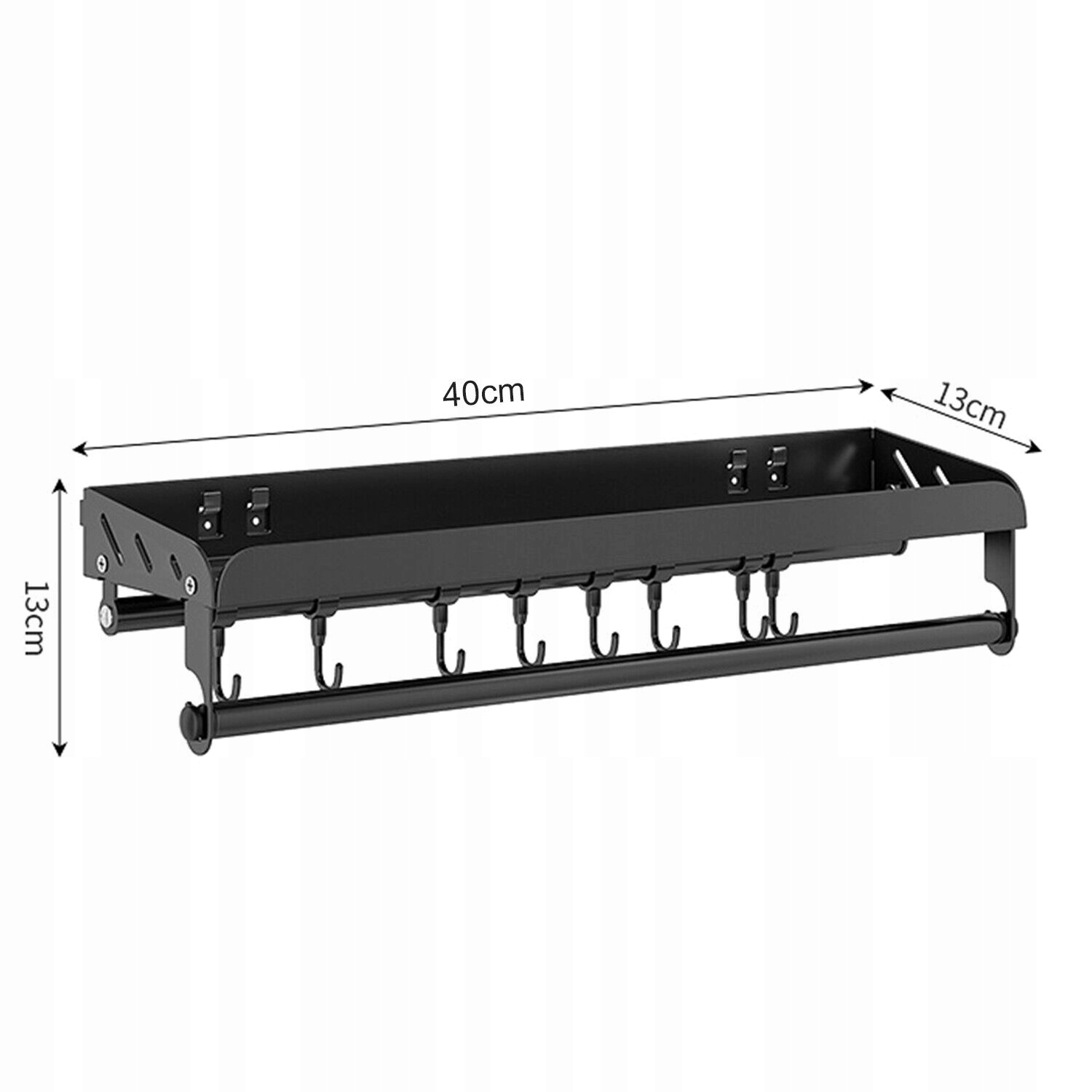 Настенные полки для специй предназначены для кухонной стены, шкафа или двери ванной комнаты. Подвеска специй на стене значительно экономит пространство на столешнице и создает чистую и идеальную среду в комнате. Размер кухонного организатора составляет 40 см в длину x 13 см в ширину x 13 см в высоту.