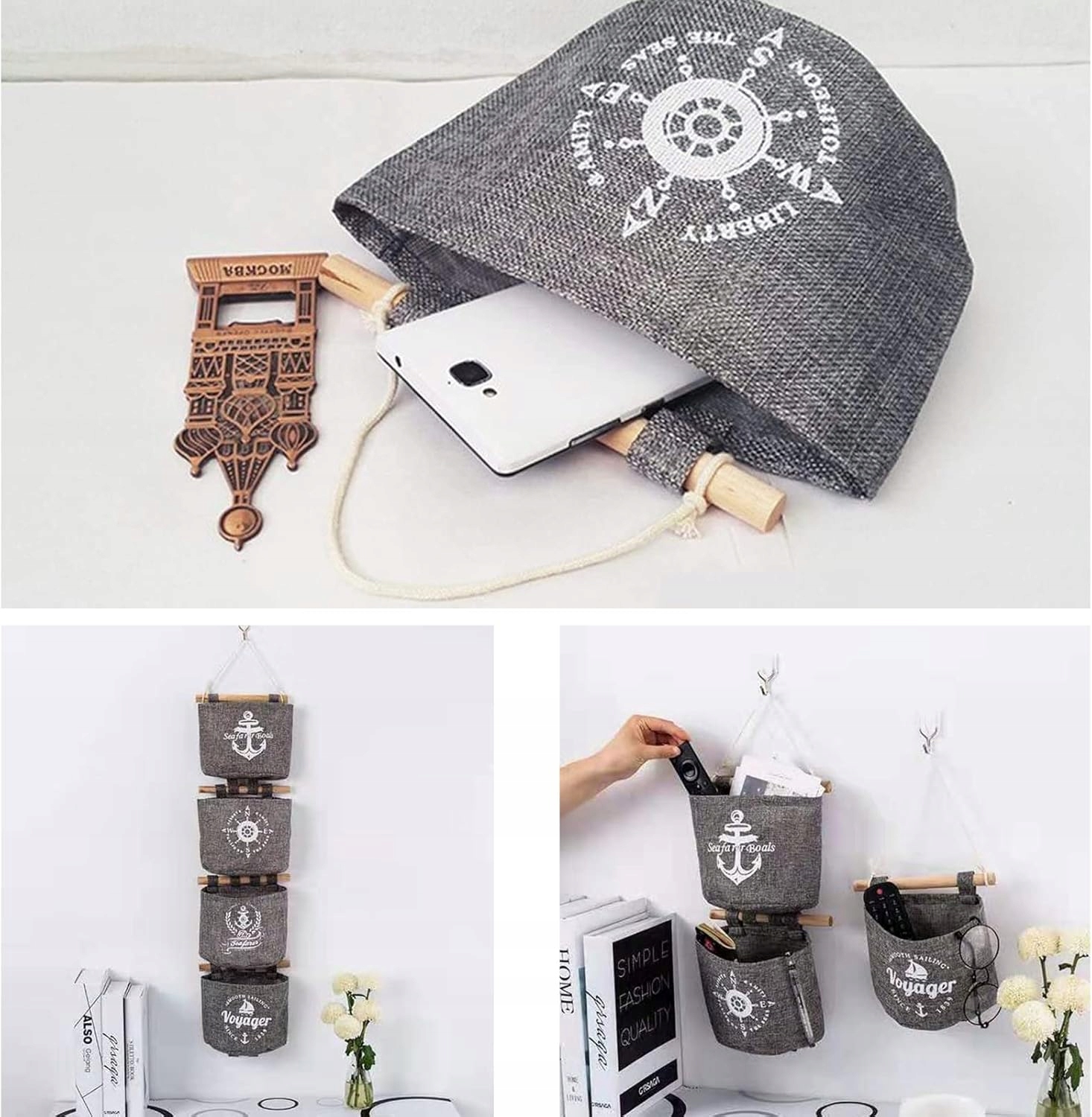 4 Различные дизайны: Включены с 4 пакетами для хранения, каждая подвесная сумка разработана в простом, но красивом рисунке из морской серии, компактным и портативным, его можно подвешивать в гардеробе, гардеробе или задней двери