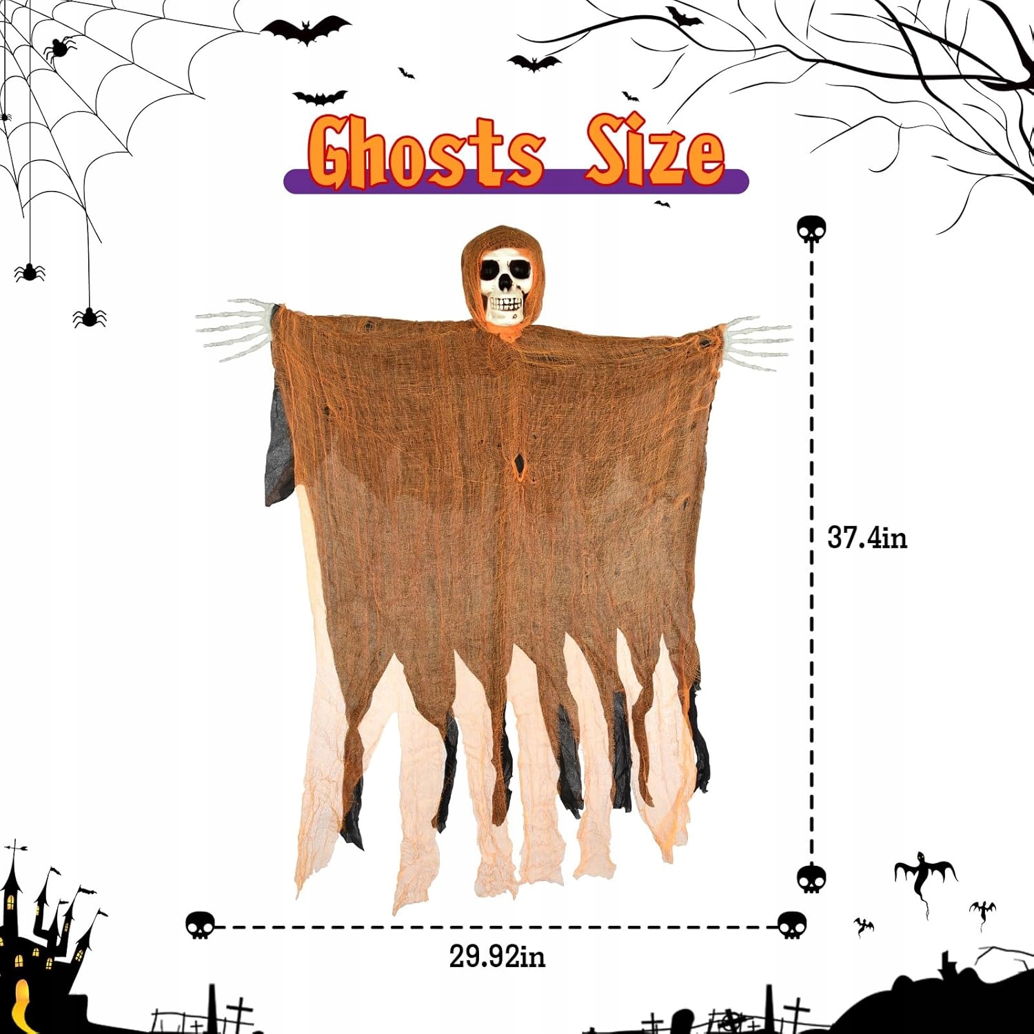 ⭐️Висячий скелет-призрак, 65 см, Украшения для Хэллоуина, Призрак, Реквизит для Хэллоуина, Ужасы, Мрачный Жнец, На улице, В помещении⭐️