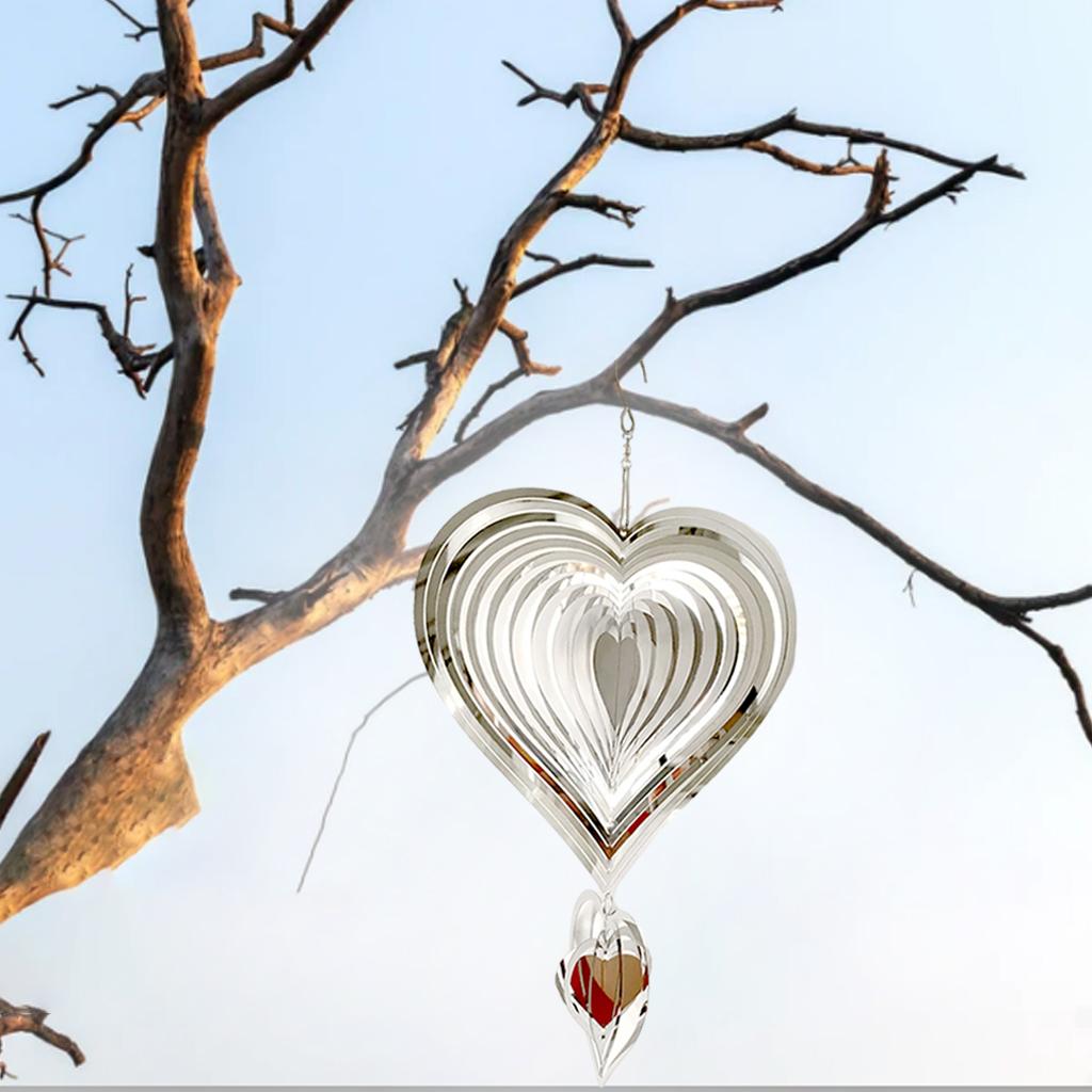 Подвесная 3D -украшение сердца Ветр разноцветный спиральный радужный роторный серебряный кулон
