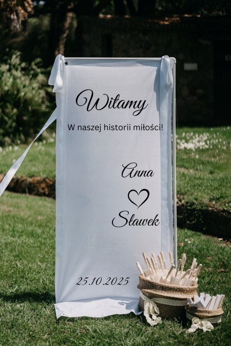 Приветственная доска на холсте 63×210, элегантное свадебное оформление